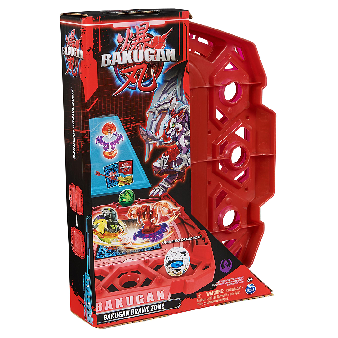 "Une arène de combat pour s'affronter et de s'immerger encore plus dans l'ambiance du dessin animé. Contenu : 1 arène de combat avec zones d'exposition, 1 Bakugan Special Attack Dragonoid, 1 anneau, 1 lanceur, 1 carte Personnage et 1 carte Portail. L'arène mesure plus de 40 cm de long. Prépare ton Bakugan en l'assemblant à l'anneau et au lanceur puis lance-le à toute vitesse pour l'ouvrir grâce à une attaque spéciale. Les billes Bakugan se déploient et se transforment en créatures fabuleuses lorsqu’elles sont envoyées correctement sur les cartes aimantées. Des combats épiques pour les enfants. Chaque Bakugan est aussi un casse-tête miniature : il faut apprendre à maîtriser son mécanisme de fermeture unique. Boîte ouverte. A partir de 6 ans."