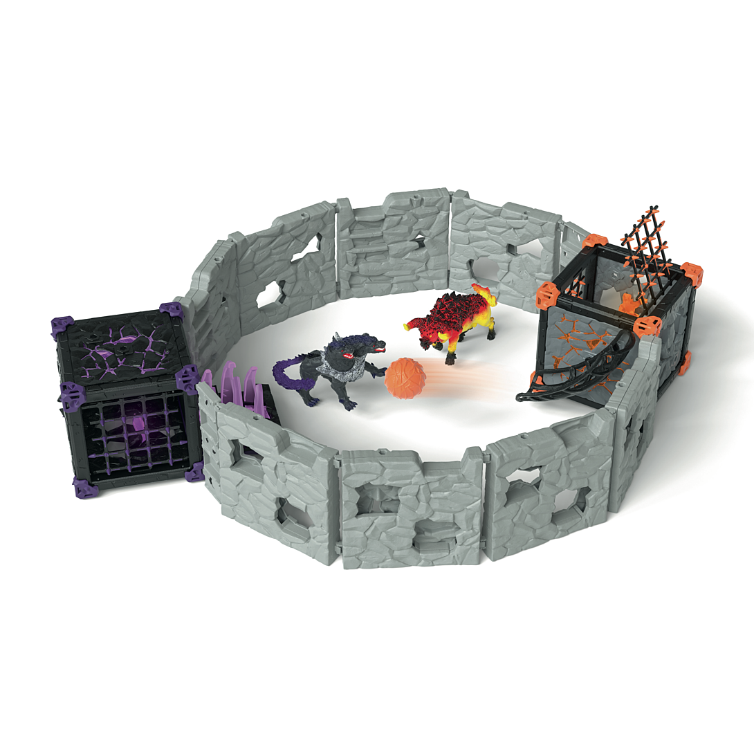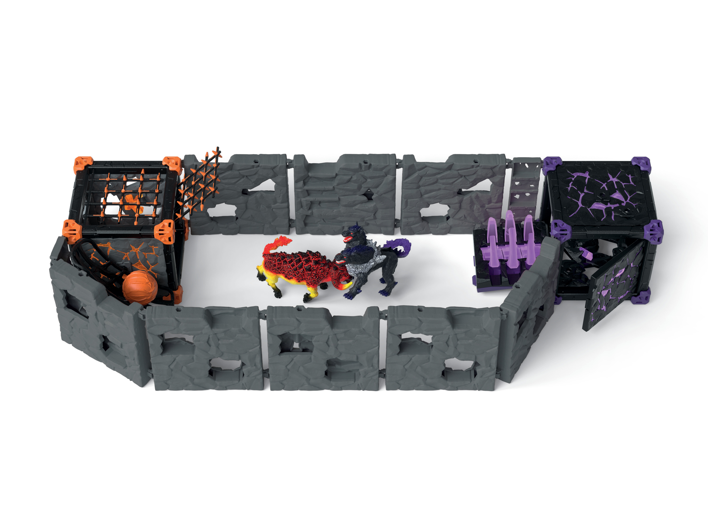 Dans l’arène, c’est l’effervescence ! Les BattleCaves se font face et attendent leur tour. C’est ici que les créatures d’ELDRADOR® défendent leurs précieux cristaux. Le dangereux taureau de feu est prêt à passer à l’attaque. Il entrouvre le museau, dévoile ses dents puissantes et secoue la tête. Le chien des Ténèbres acceptera-t-il de se battre et de s’aventurer dans la BattleCave de lave ? Les BattleCaves ELDRADOR® CREATURES transforment une chambre d’enfant en une zone de combat ! Qui osera se lancer dans cet affrontement déchaîné ? Toutes les BattleCaves peuvent être combinées les unes avec les autres. Les assaillants sont accueillis par de sombres tunnels et des pièges redoutables... Ils s’affrontent en duel dans la grande arène. Quel combat !