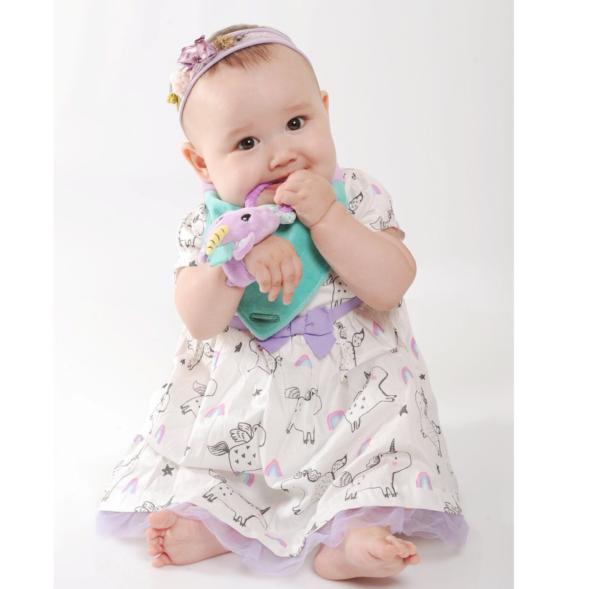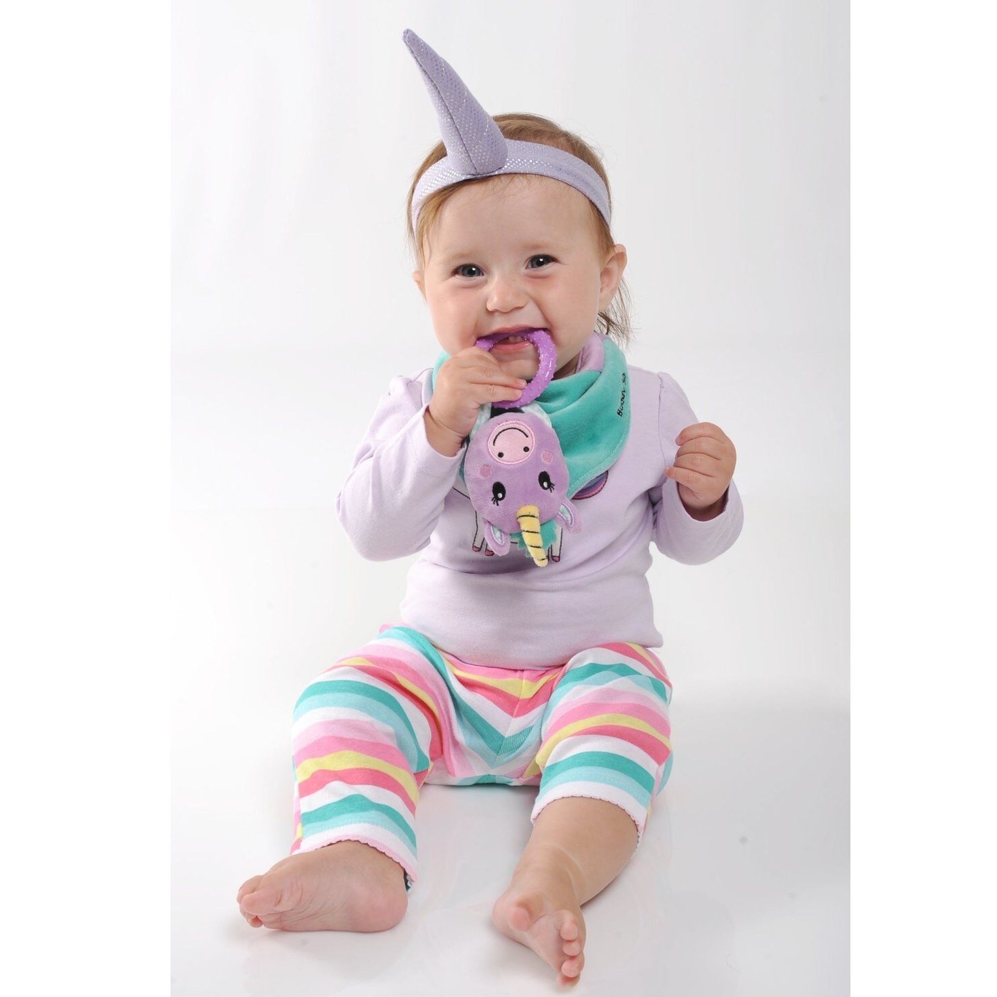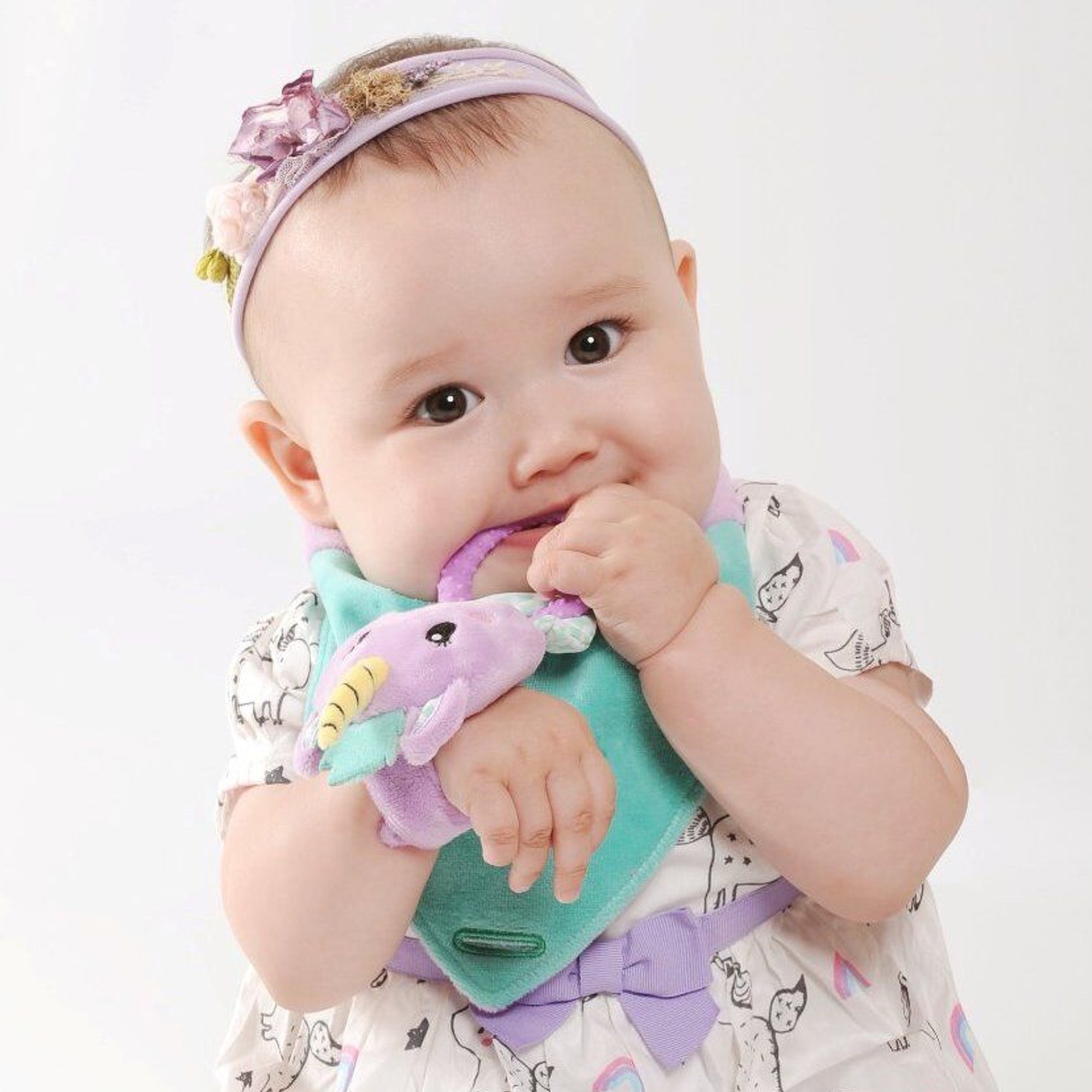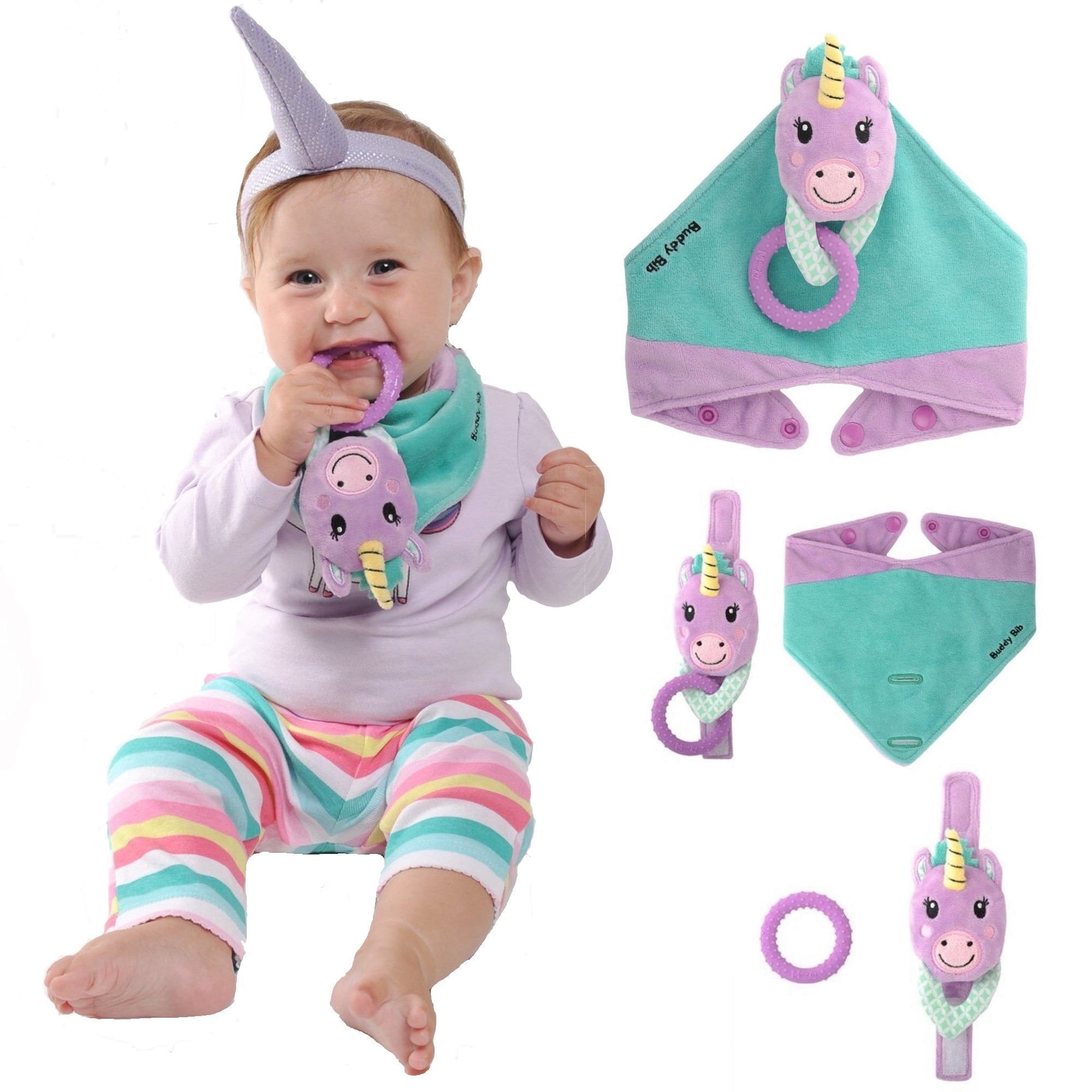 Chouette, Éléphant, Renard ou Licorne? On parie qu'il sera difficile de choisir entre ces 4 modèles originaux, qui conviennent autant à une petite fille qu'à un petit garçon. Quel que soit votre choix, ce formidable jouet d'éveil avec bavoir et jouet de dentition deviendra vite le compagnon préféré de Bébé et l'aidera pendant cette période difficile des poussées dentaires.