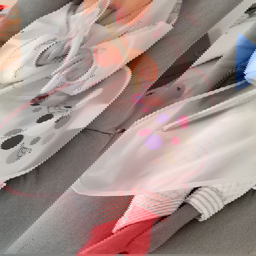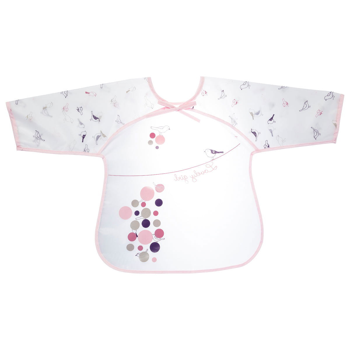 Bavoir tablier en plastique, avec manches longues de la collection Babycalin Birdy Girl.