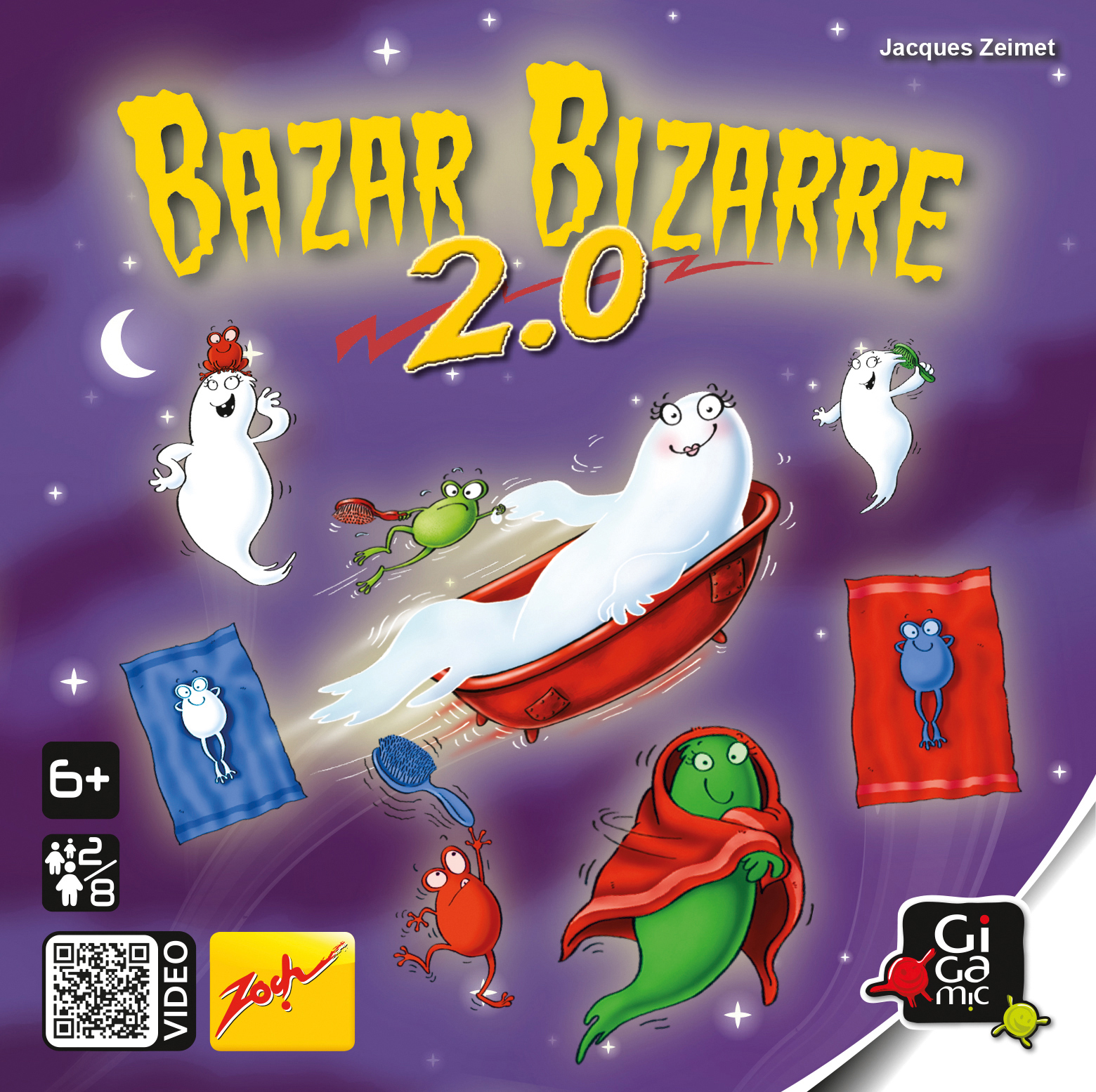 C’est le retour du Bazar. Un même principe diabolique pour ce deuxième opus qui se joue seul ou combiné à Bazar Bizarre. Mais attention, car une grenouille bavarde vient semer la zizanie : quand elle apparaît, il vous faudra nommer l’objet qui apparaît à l’identique sur la carte...Mais si rien ne correspond, c’est dans une autre langue qu’il faudra l’annoncer ! Et pour les plus audacieux, des variantes sont encore là pour renouveler le challenge. Vivacité d’esprit exigée !
