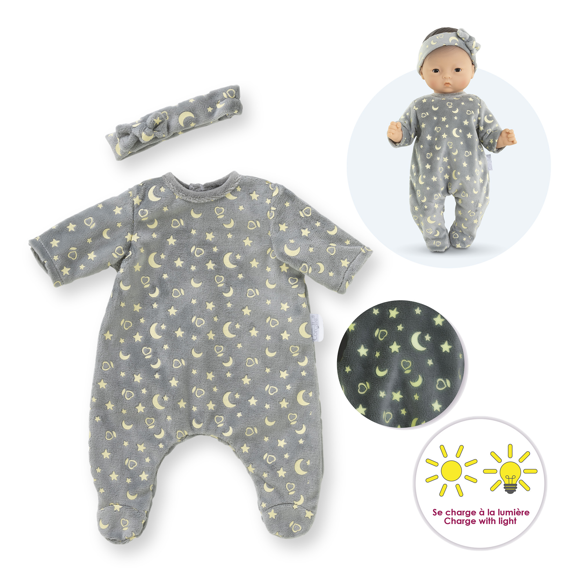 Pour faire de beaux rêves, le Pyjama Brille Dans La Nuit, avec son bandeau, est le vêtement idéal pour les petits poupons de 30 cm mon premier poupon Corolle. Confectionné dans des matières douces et résistantes, il est facile à enfiler grâce aux bandes auto-agrippantes adaptées à la dextérité des petites mains. Et en plus, il brille dans le noir ! Les petits poupons de 30 cm disposent d'une collection variée de vêtements et d'accessoires dans la gamme mon premier poupon Corolle pour pouponner pour la première fois. Dès 18 mois. Poupon vendu séparément.