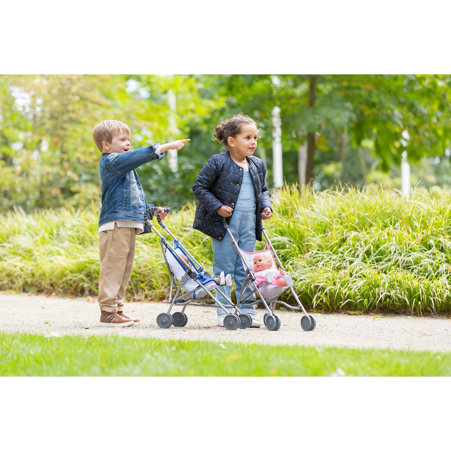 « On va se promener bébé ? » Cette poussette-là, elle a tout l’air d’une poussette de grand ! La poussette Canne est idéale pour emmener son grand poupon de 36cm à 42cm en balade ! On assied son poupon dans la poussette, une jambe de chaque côté de la ceinture et on l’attache : hop, c’est parti ! Légère et pliable, elle est facile à transporter et ne prend pas de place quand vient le moment de la ranger. Lorsqu’il faut la plier, il y a deux points de fermeture pour protéger les petits doigts des pincements. Les grands poupons disposent d'une collection variée de vêtements et d'accessoires dans la gamme mon grand poupon Corolle pour jouer et faire comme les grands. Dès 3 ans.