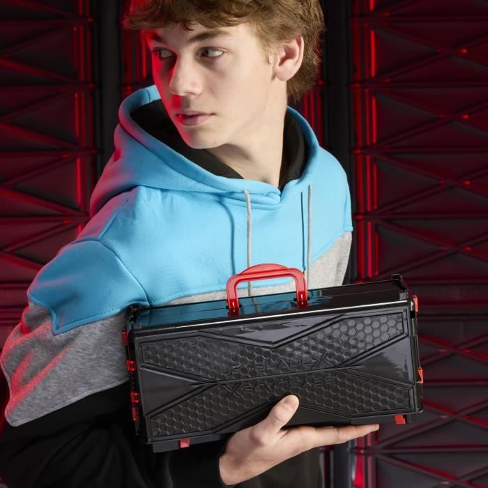 On peut vivre l'expérience Beyblade X, la prochaine génération d'arènes, de lanceurs et de toupies Beyblade. Les Bladers lancent leurs toupies dans des compétitions intenses contre leurs adversaires et marquent des points. Le premier à marquer 4 points gagne. On peut combattre n'importe où avec l'arène Beystadium Combats mobiles Beyblade X ! On découvre l'arène en la dépliant et on la replie en quelques étapes pour l'emporter avec soi et la ranger facilement. Elle fonctionne avec le tout nouveau système Accélération X pour faire passer l'action au niveau supérieur. Quand les dents d'une toupie Beyblade X rencontrent celles du rail de l'arène, elle reçoit une super-accélération qui la propulse à toute vitesse dans l'arène pour des impacts écrasants. En associant l'arène Beystadium avec les lanceurs et les toupies Beyblade X à disques, cliquets et pignons interchangeables pour créer sa propre toupie imbattable. (Toupies et lanceurs vendus séparément, dans la limite des stocks.) Les parents peuvent scanner le code sur les toupies Beyblade X pour pouvoir les utiliser dans l'appli Beyblade X ! Les toupies Beyblade avec pièces en métal moulé Takara Tomy authentiques sont de super cadeaux pour filles et garçons à partir de 8 ans. Hasbro et tous les termes associés sont des marques de commerce de Hasbro.