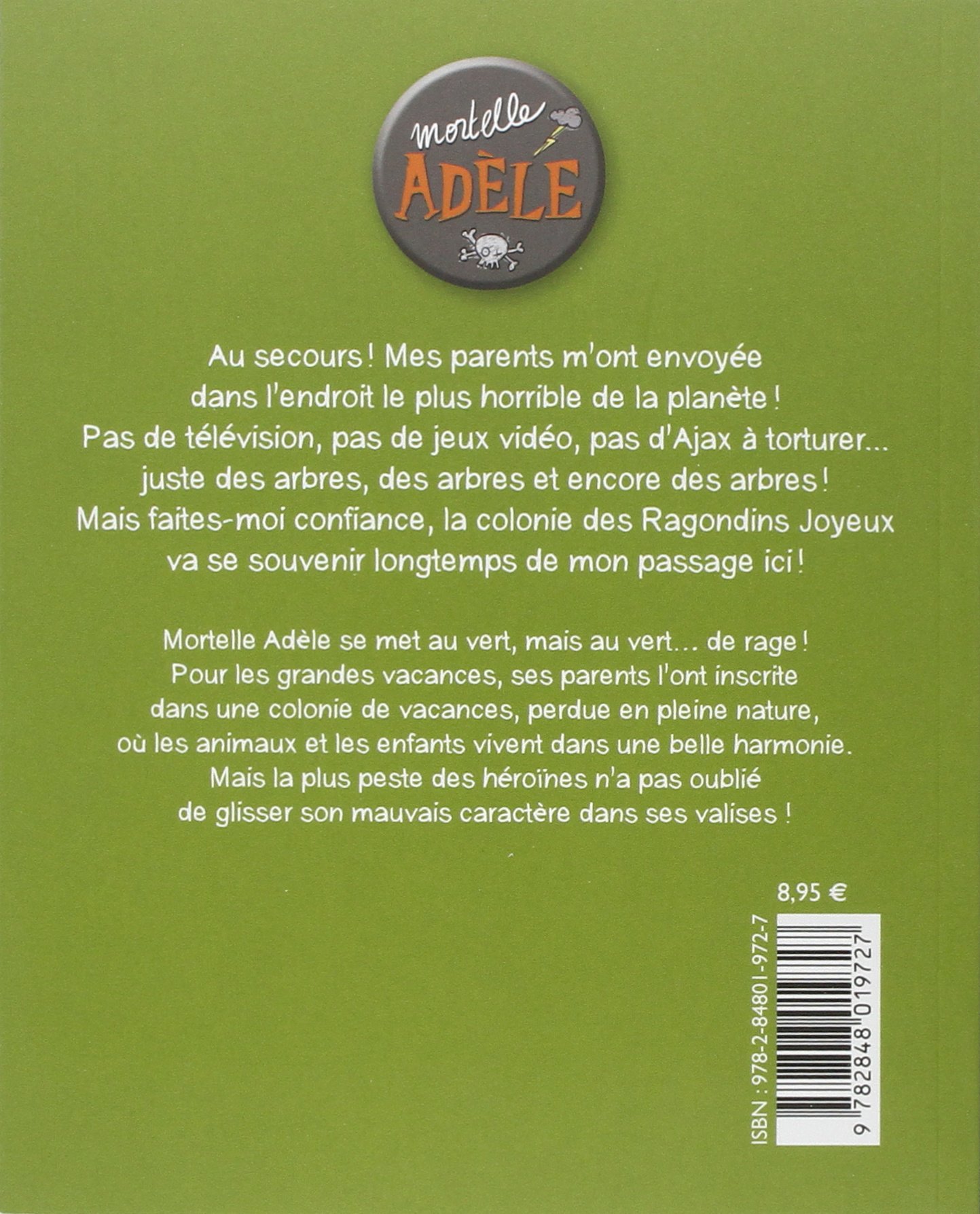 Mortelle Adèle se met au vert, mais au vert... de rage ! Pour les grandes vacances, ses parents l'ont inscrite dans une colonie de vacances, perdue en pleine nature, où les animaux et les enfants vivent dans une belle harmonie. Mais la plus peste des héroïnes n'a pas oublié de glisser son mauvais caractère dans ses valises !