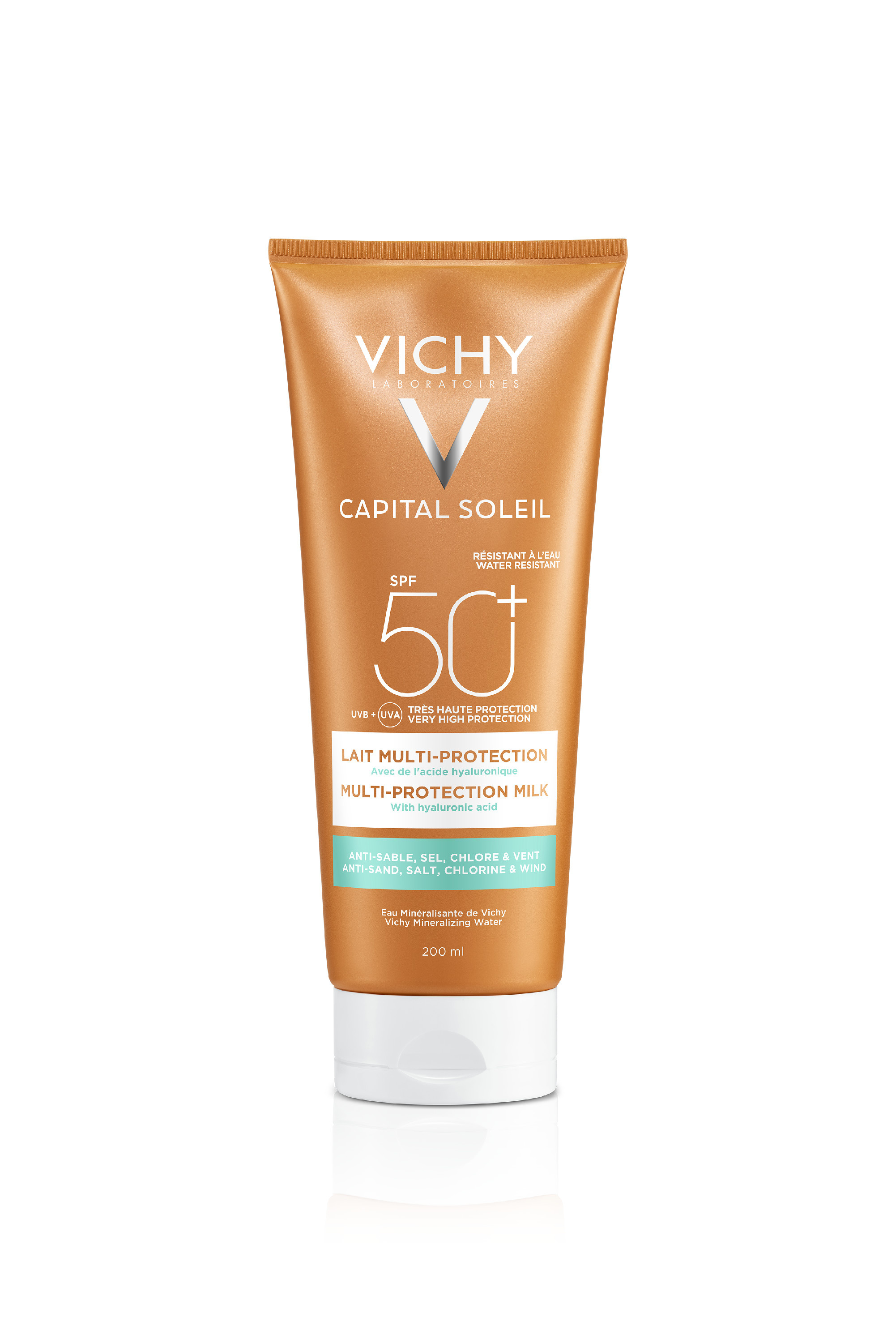 Fatigué(e) de perdre votre crème solaire dans la mer ou sur la plage ? Optez pour le Lait multi-protection, formulé pour résister au sable, à l'eau, au chlore et au sel.