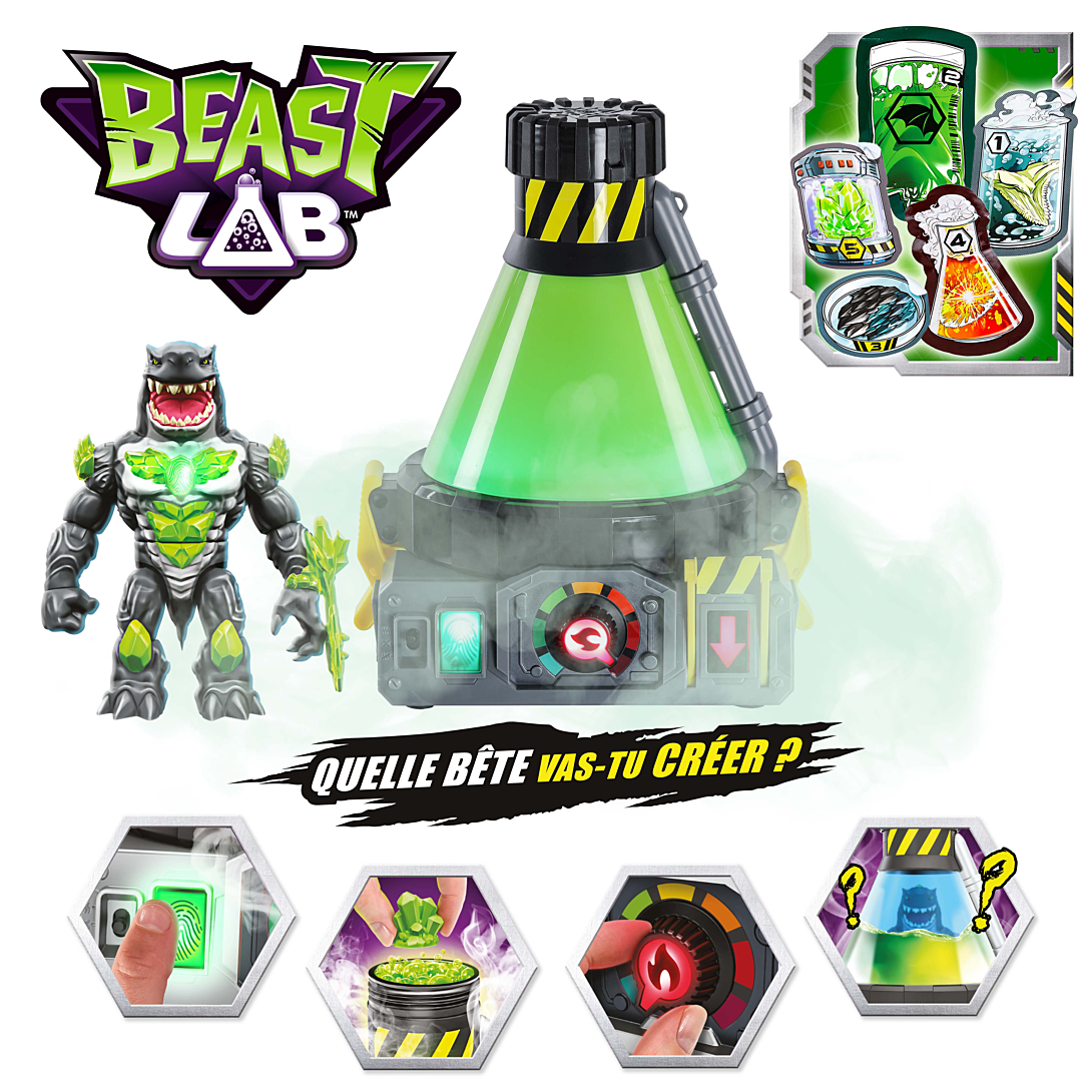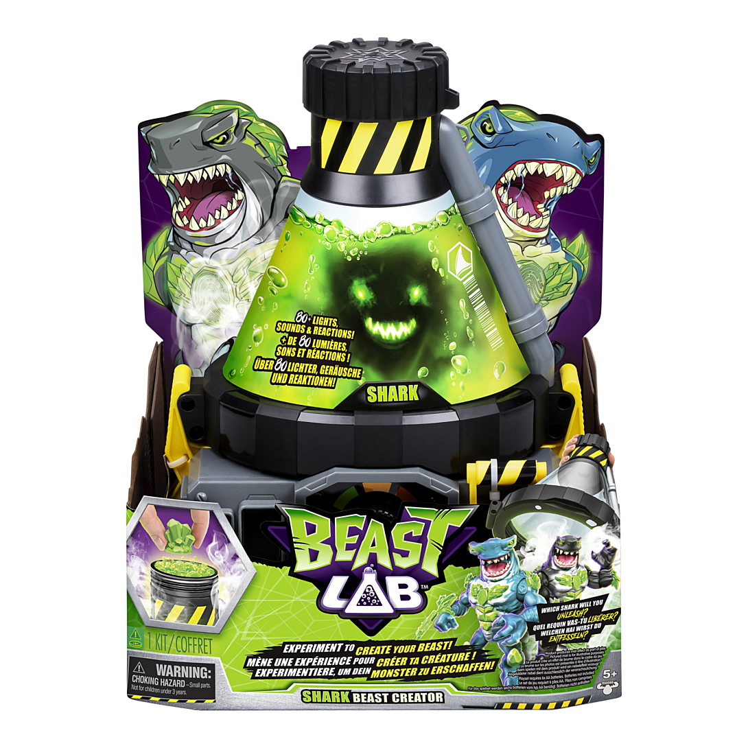 Active ton Beast Creator avec ton empreinte et réalise une expérience : ajoute tes ingrédients et actionne les commandes pour libérer ta créature ! Quel requin vas-tu créer ? Avec de la vraie brume biologique, plus de 80 lumières, sons et réactions, 1 figurine 19cm sonore et lumineuse et des heures de jeux. Piles non incluses.