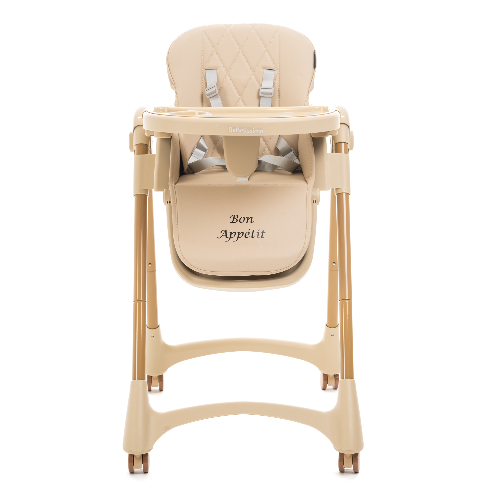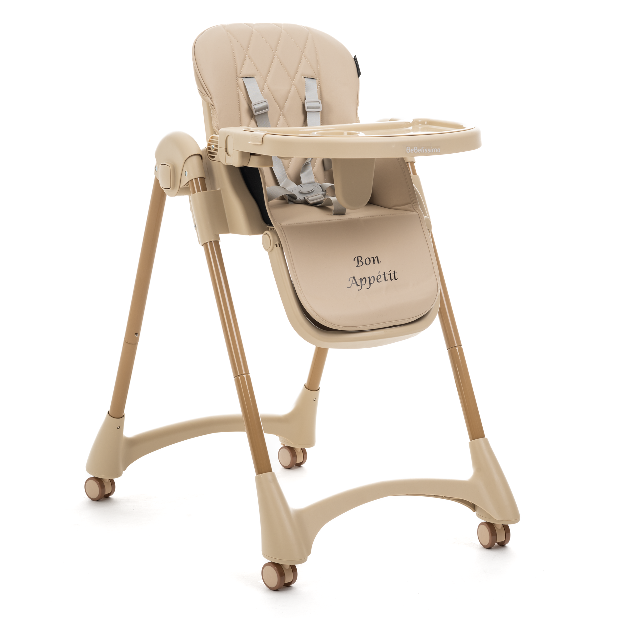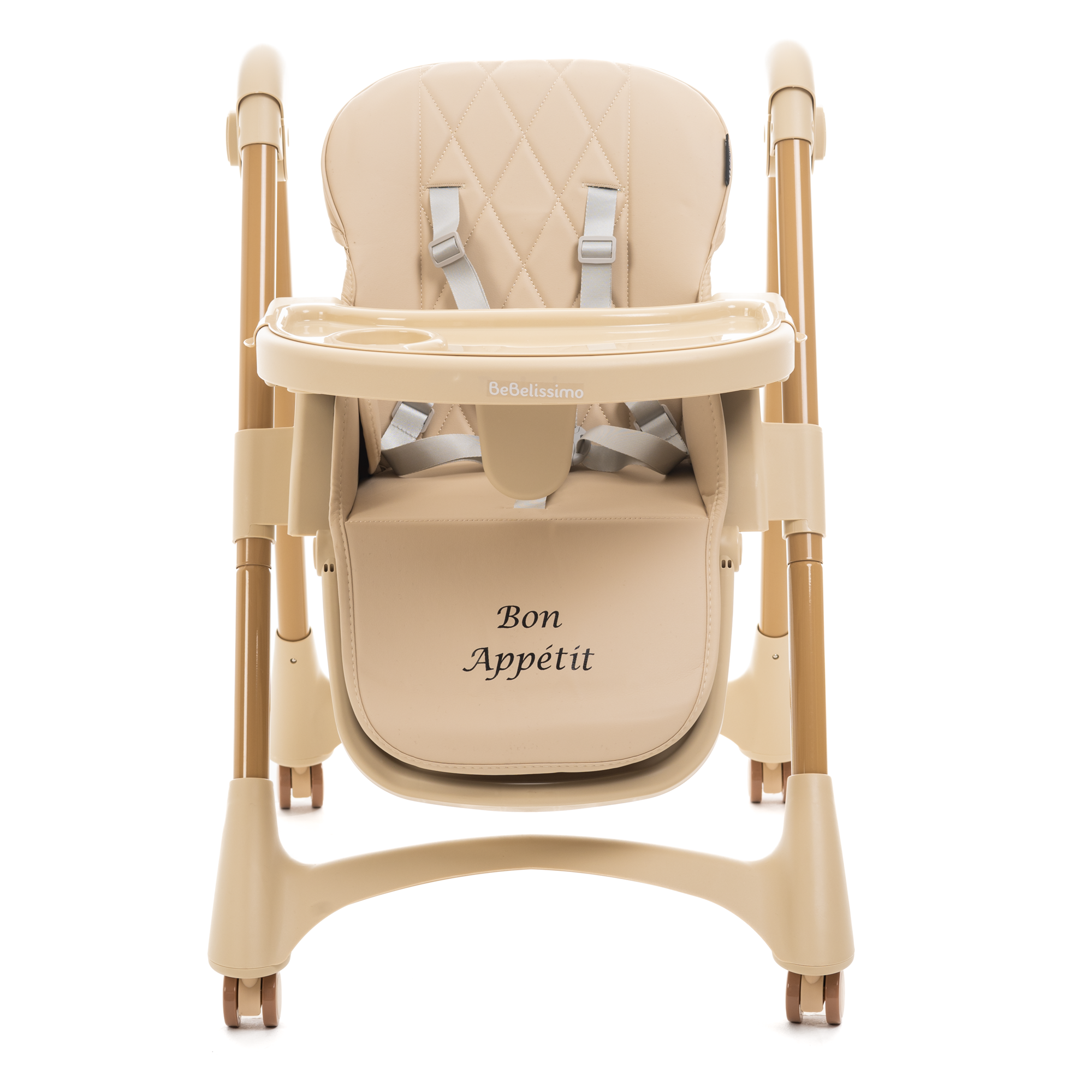 Libellé Bebelissimo - Chaise haute évolutive bébé - Pliable - Compacte - Réglable hauteur - De 6 mois à 3 ans (15kg) - beige - Bon Appetit