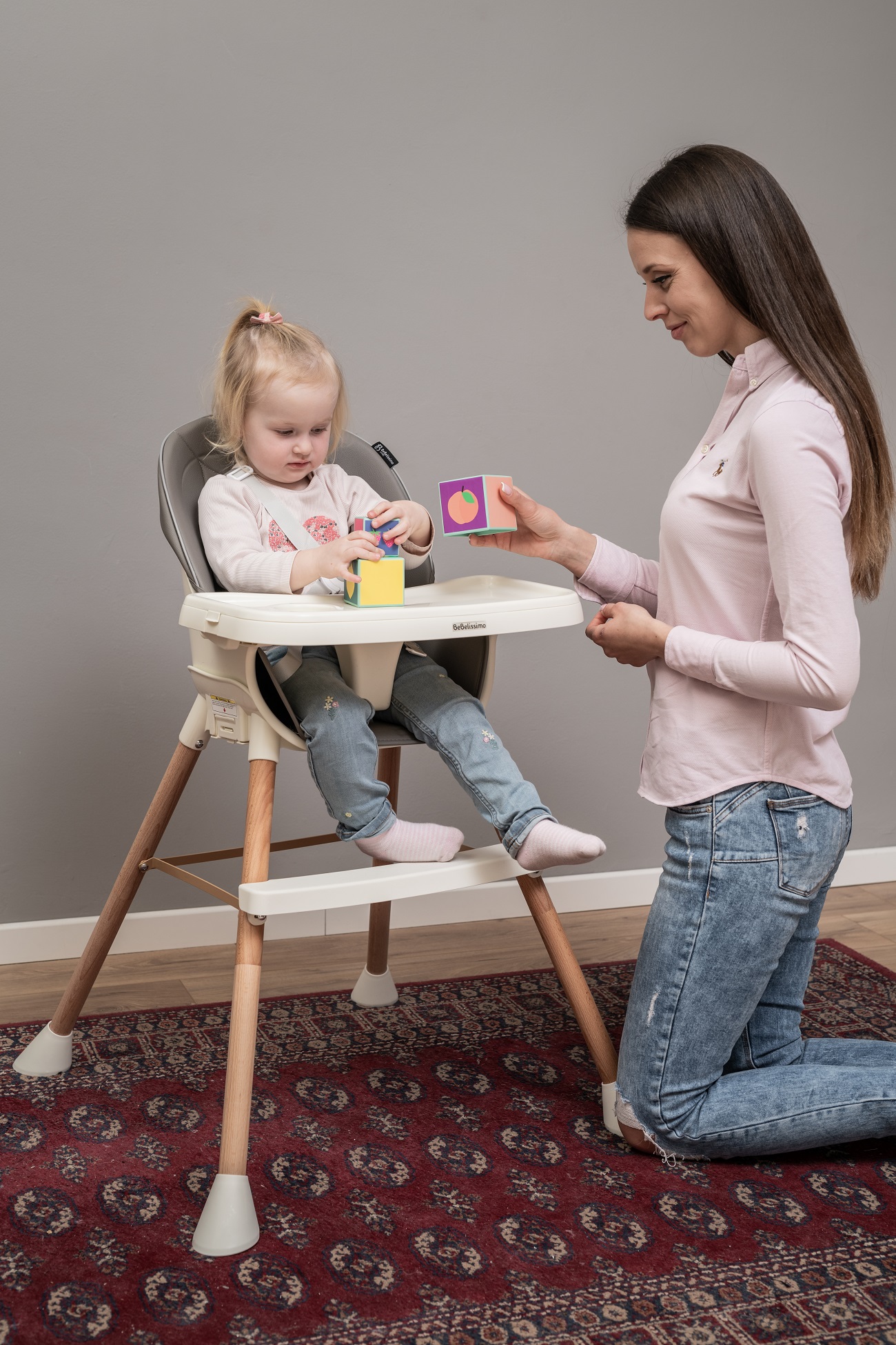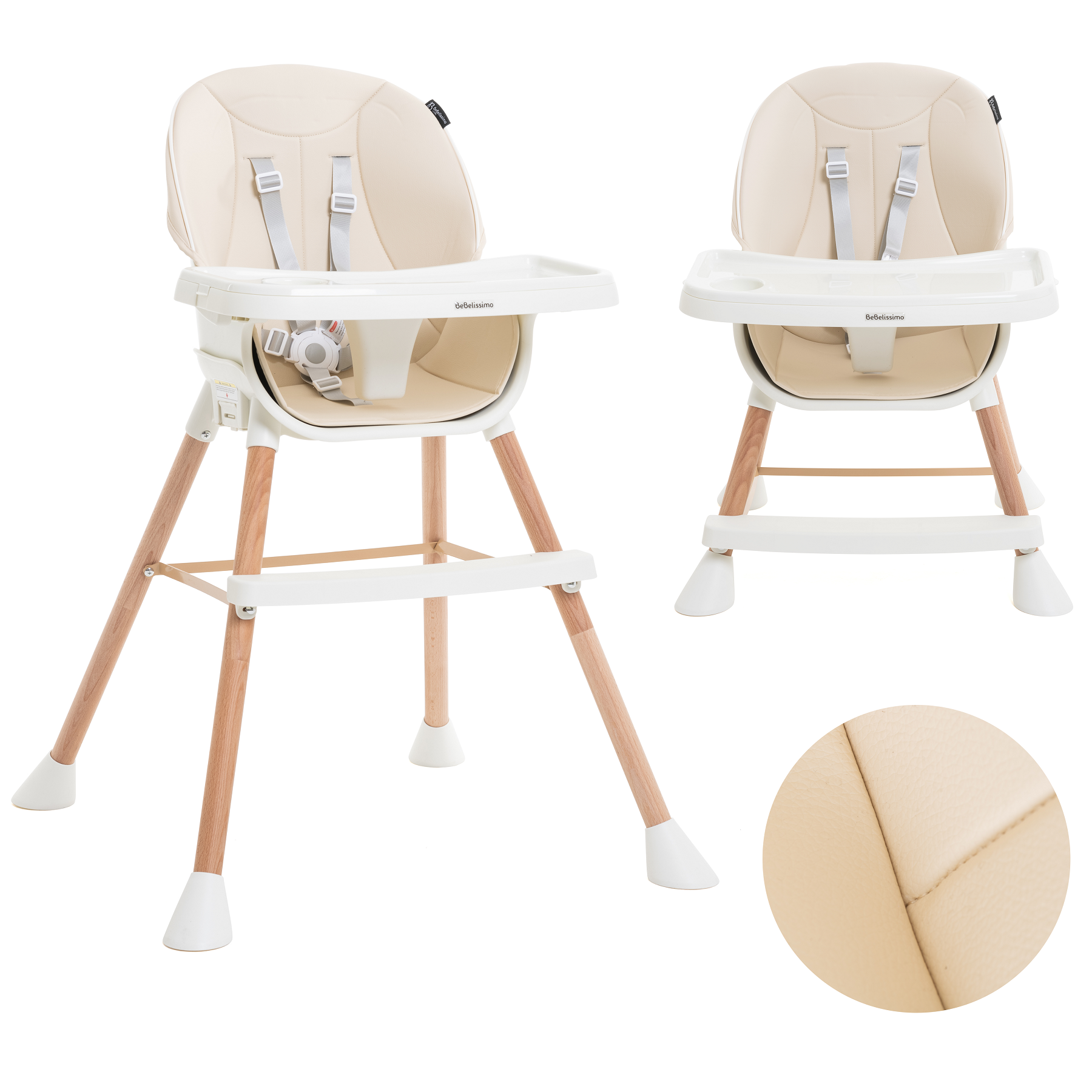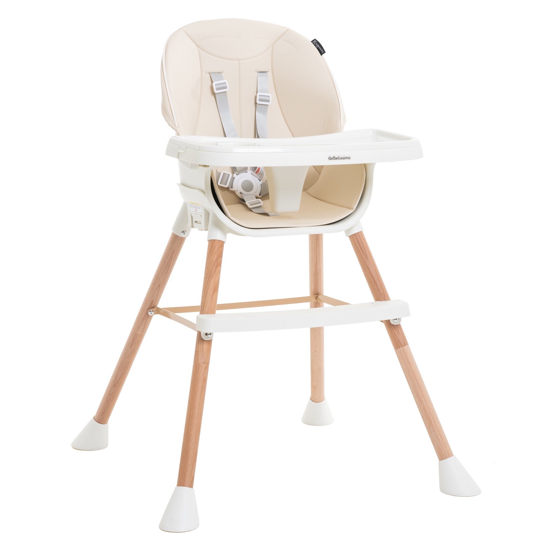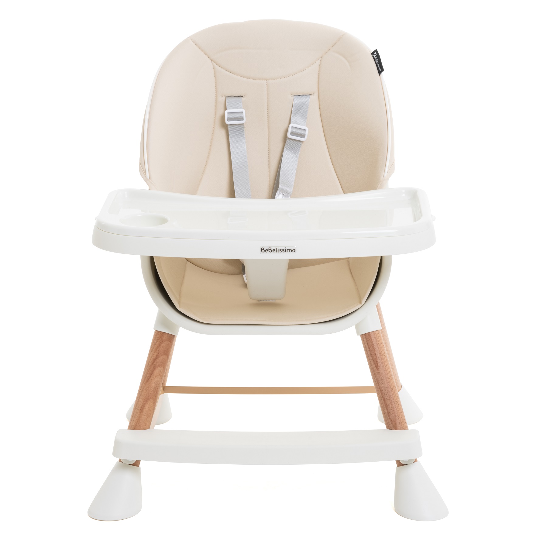 BEBELISSIMO - Chaise Haute Évolutive en Bois - 3 en 1 – 6 mois jusqu’à 5 ans - réhausseur beige