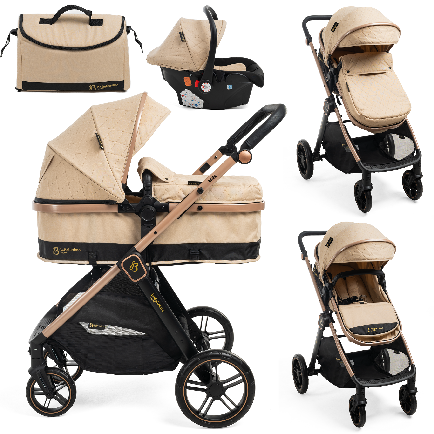 | Libellé | BEBELISSIMO - Poussette combinée trio 3 en 1 - siège auto 0+ IRIS – nacelle – dès la naissance – jusqu’à 22kg - beige |