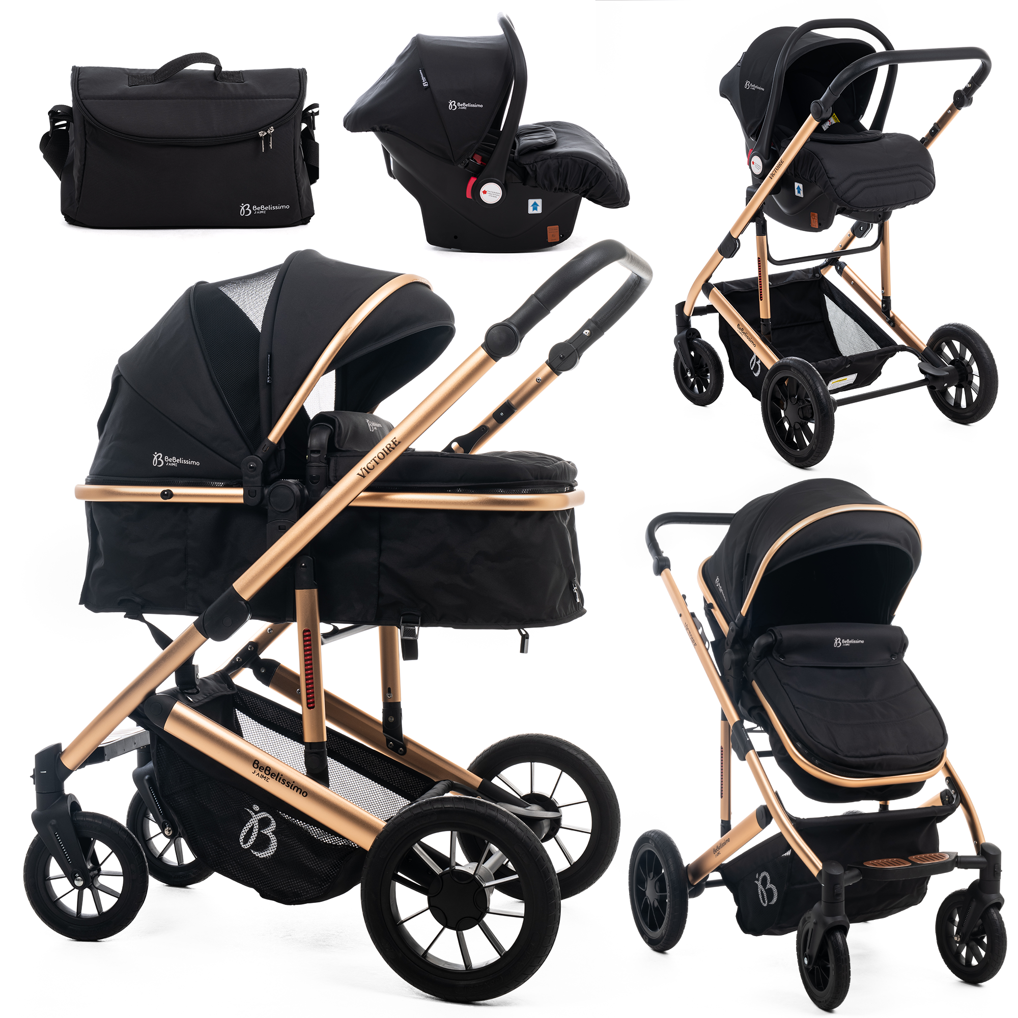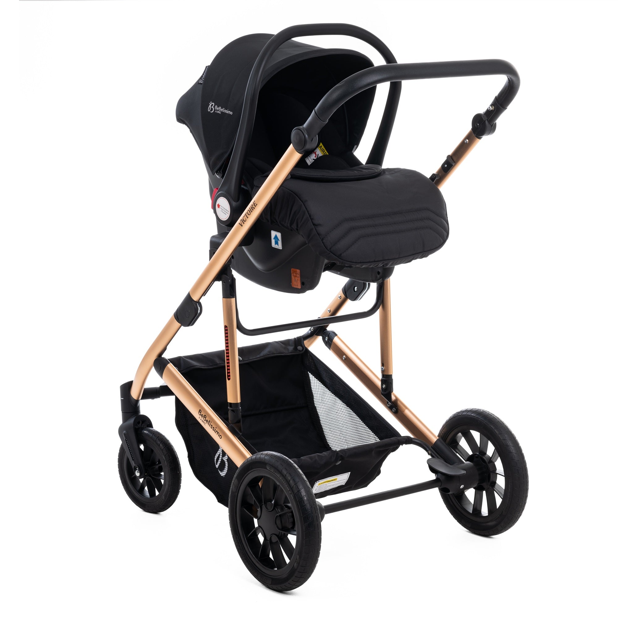 | Libellé | Bebelissimo - poussette combinée trio 3 en 1 - siège auto 0m – landau – dès la naissance – jusqu’à 22kg – victoire i-size - gold |