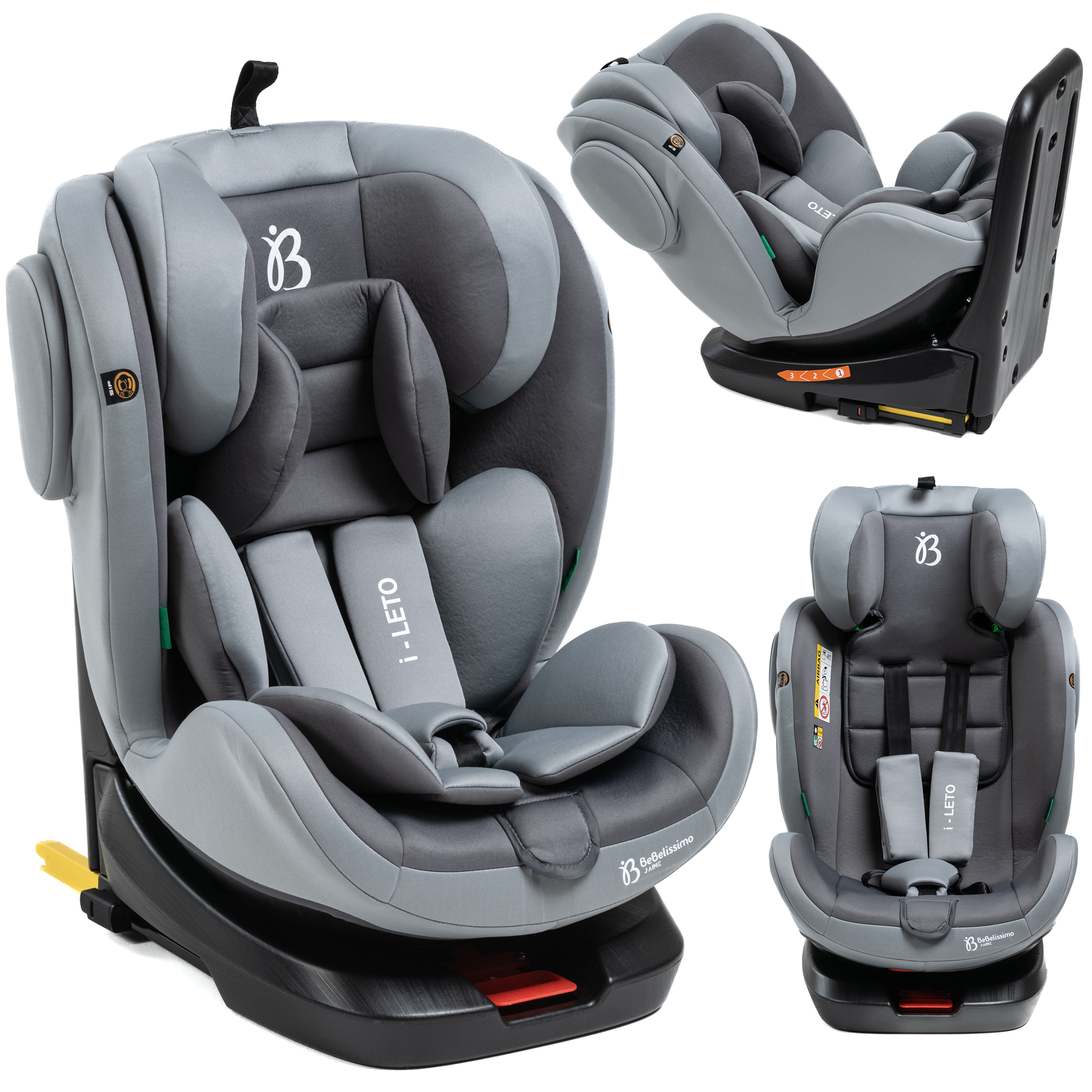 BEBELISSIMO - Siège auto Isofix - pivotant 360 ° - 40-150cm - 0-36kg - i-size - Leto - gris - protections