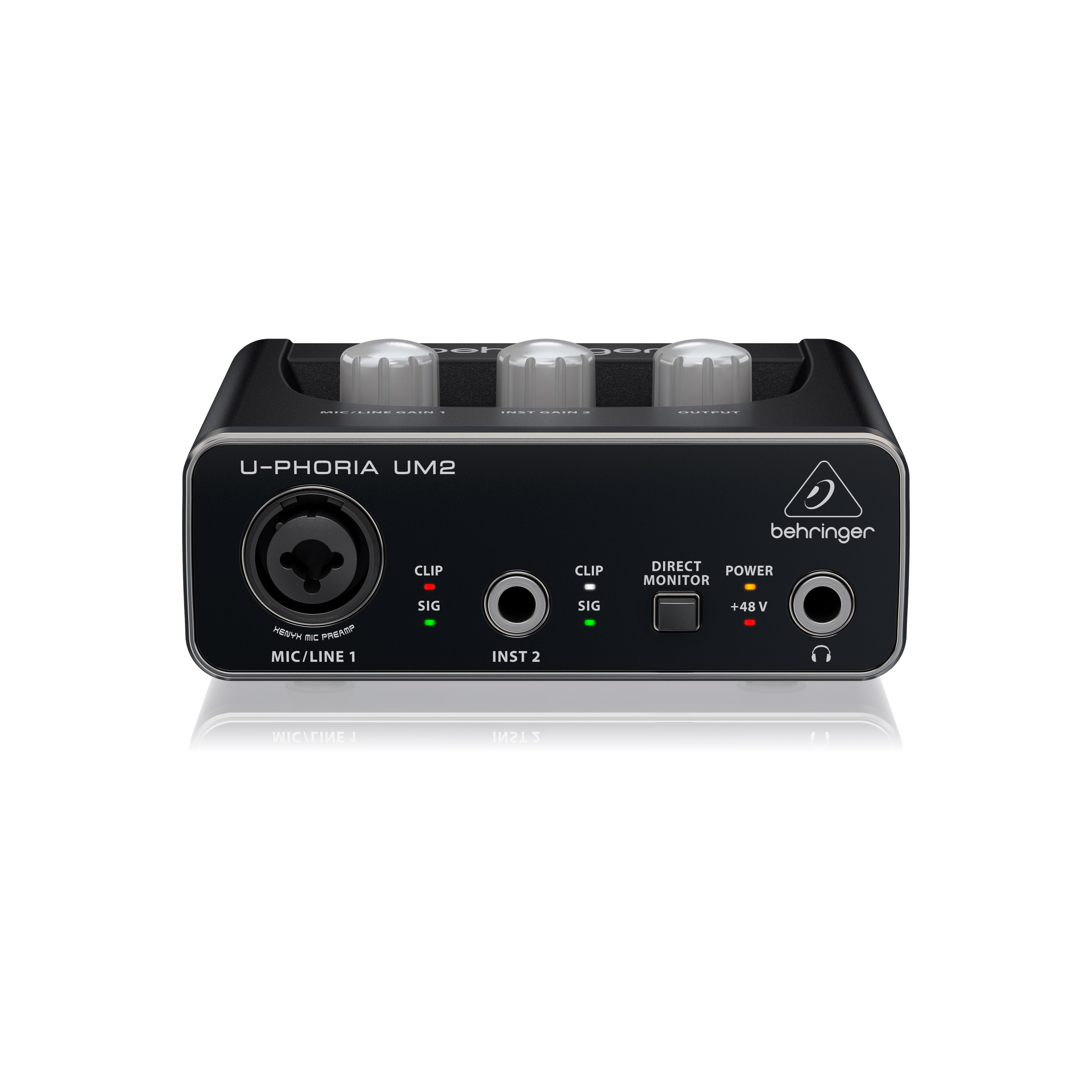 Carte son externe 2 entrées et sorties, alim +48v pour micro, alimentation USB 2.0, compatible PC et Mac. Préampli micro XENYX pour une qualité de son exceptionnelle.