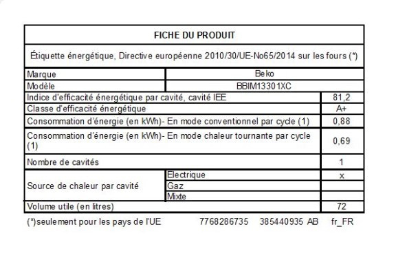 Libellé Beko BBIM13301XC four 72 L 3300 W Noir, Acier inoxydable