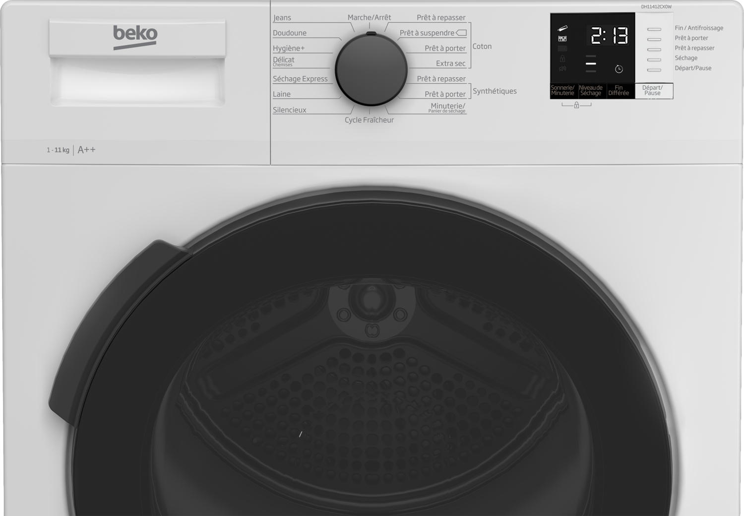 | Libellé | Beko DH11412CX0W sèche-linge Pose libre Charge avant 11 kg Blanc |