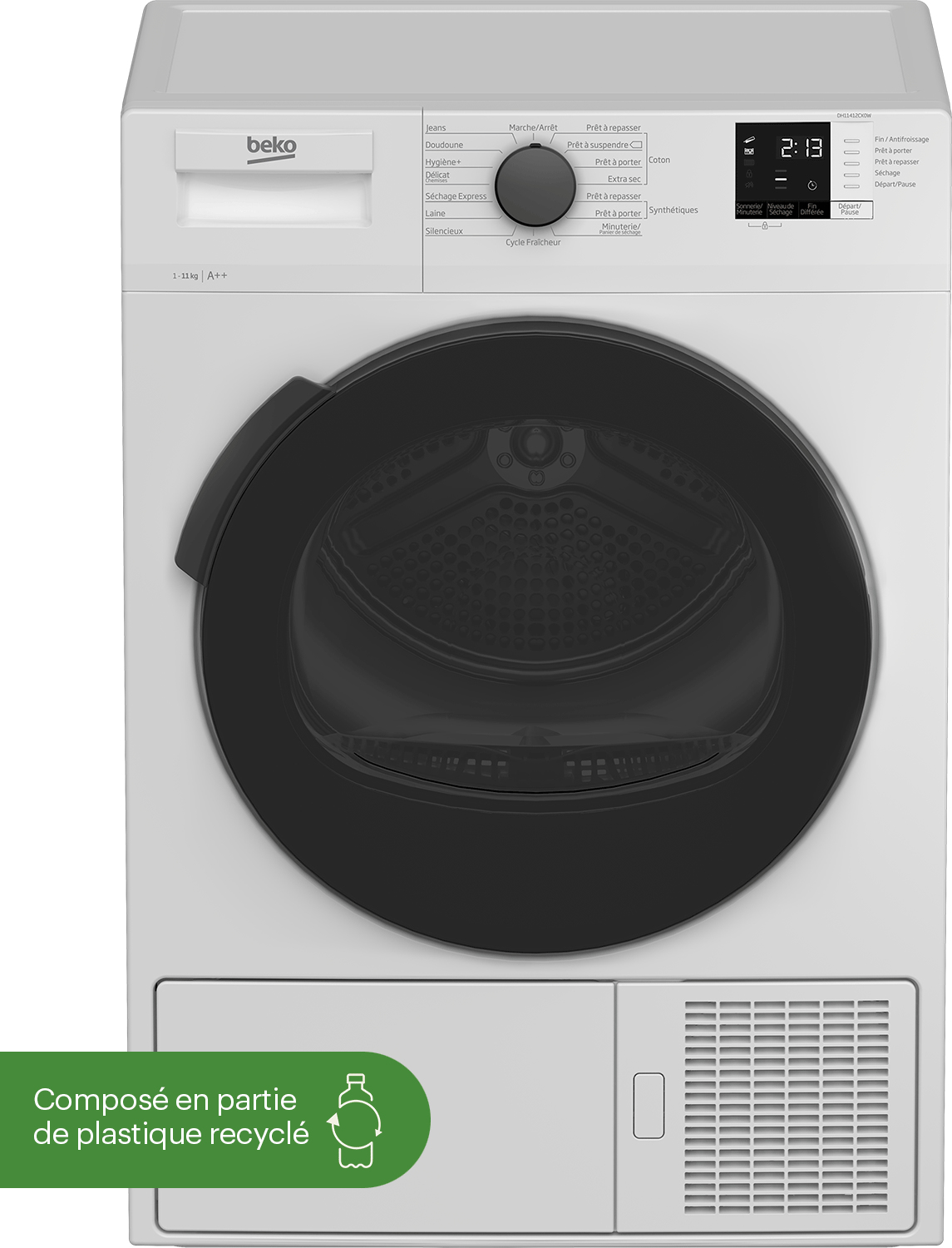 30% des composants de ce sèche-linge sont fabriqués à partir de matériaux recyclés et de bouteilles en plastique recyclées.