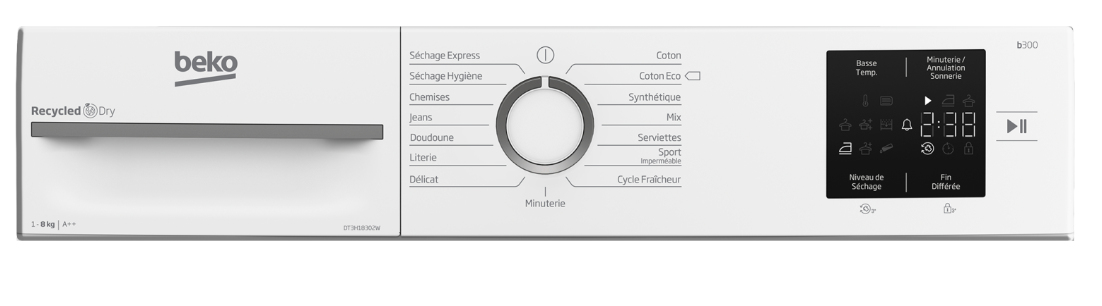 Libellé Beko DT3H18302W sèche-linge Pose libre Charge avant 8 kg Blanc