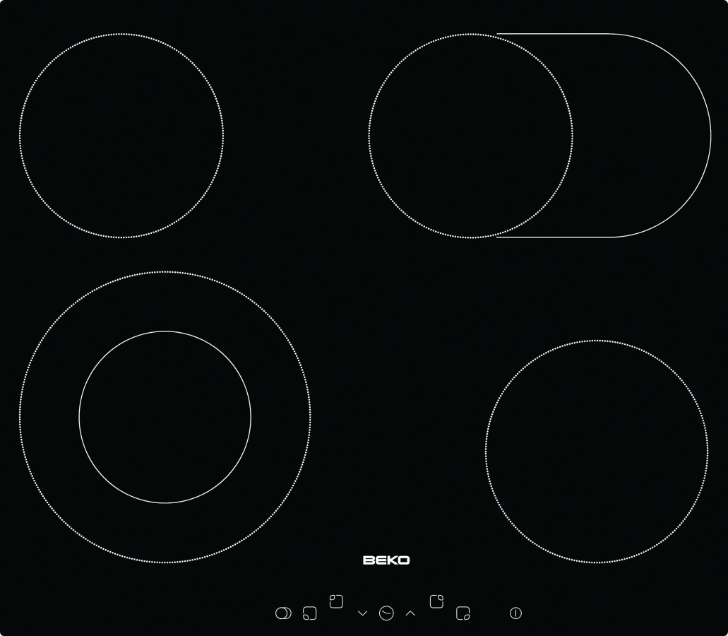 Beko HIC64403T. Couleur du produit: Noir, Placement de l'appareil: Intégré, Type de plaque: Céramique. Type de commande: Tactile. Largeur: 580 mm, Profondeur: 510 mm, Hauteur: 55 mm