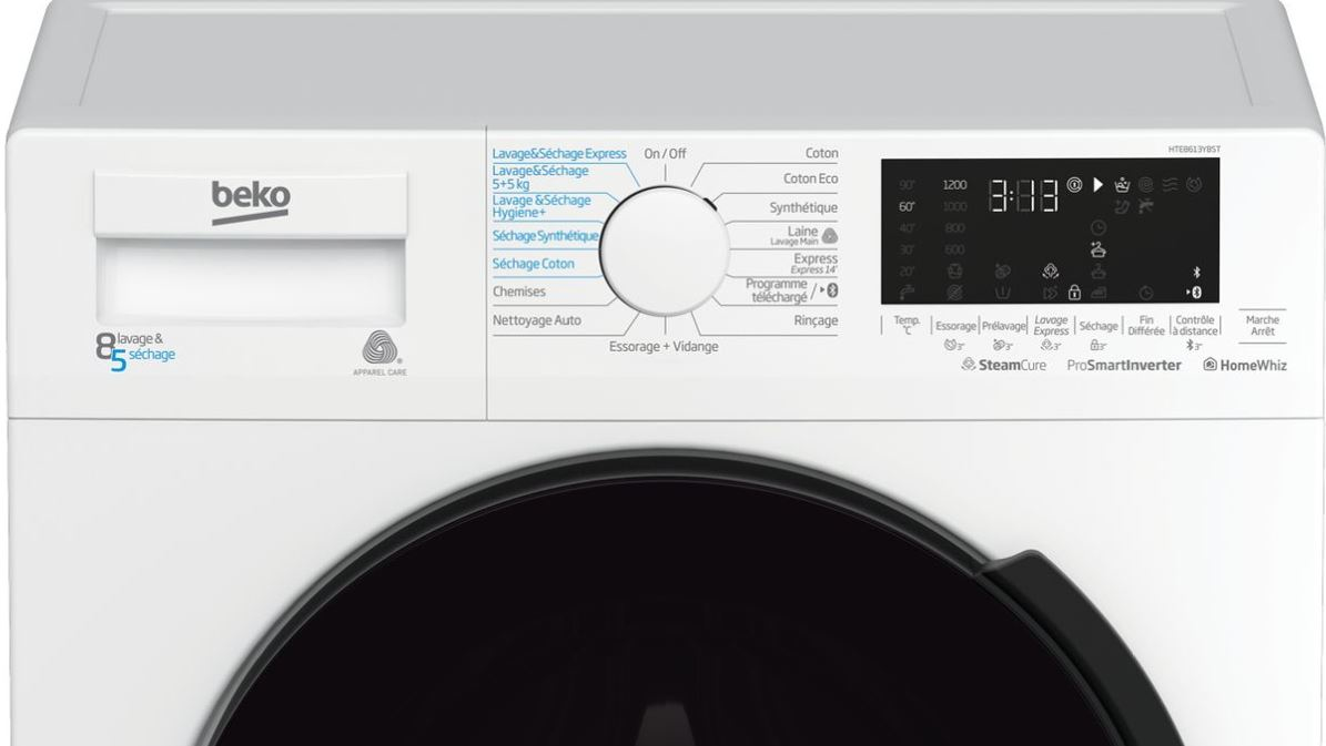 Libellé Beko HTE8614YBST machine à laver avec sèche linge Pose libre Charge avant Blanc