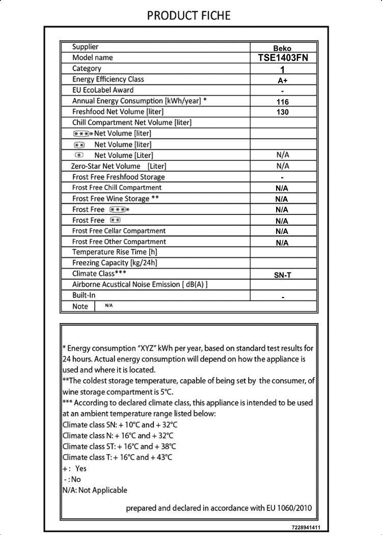 | Libellé | Beko TSE1403FN réfrigérateur Pose libre 128 L F Blanc |