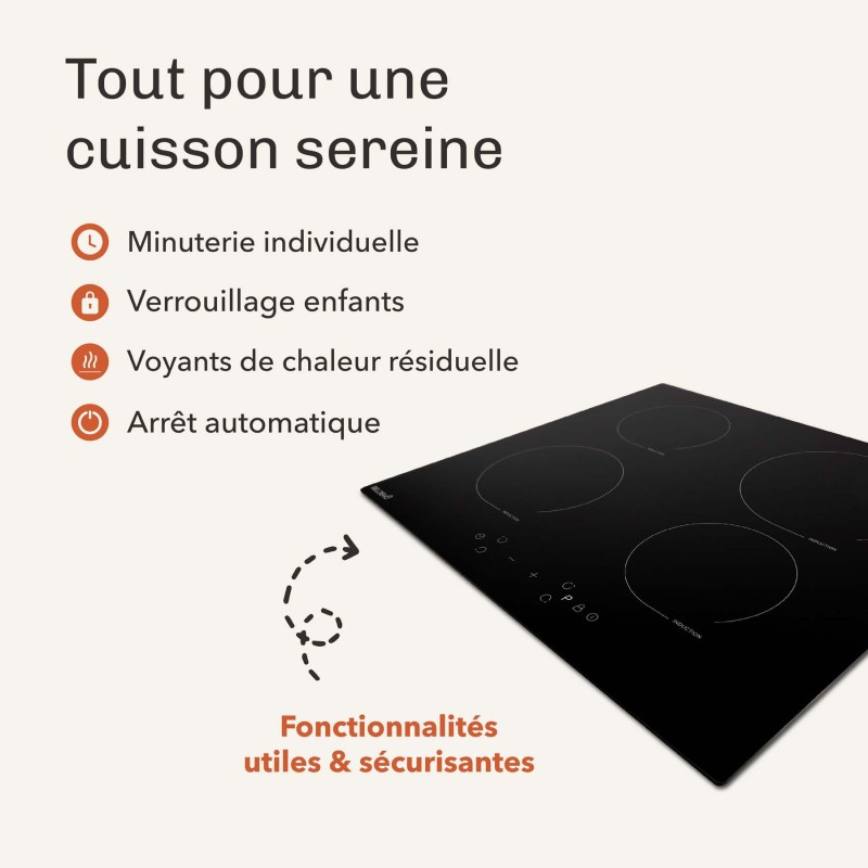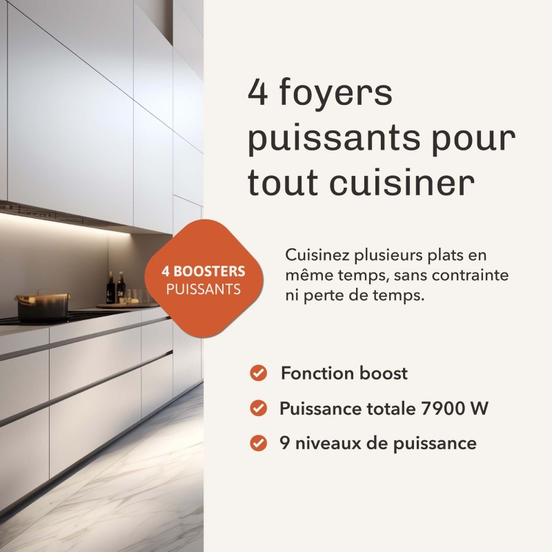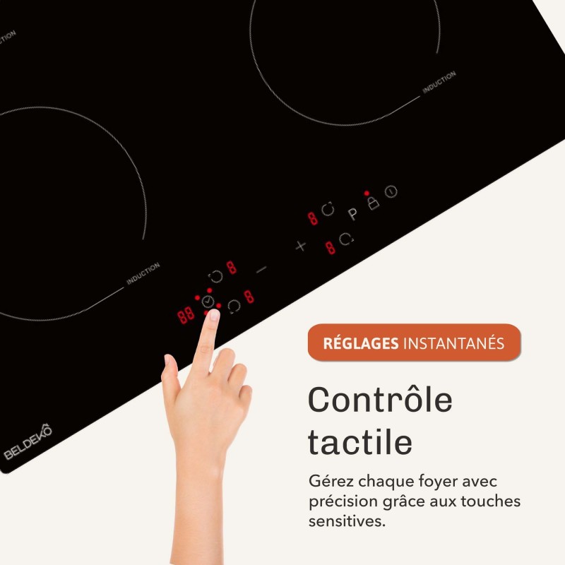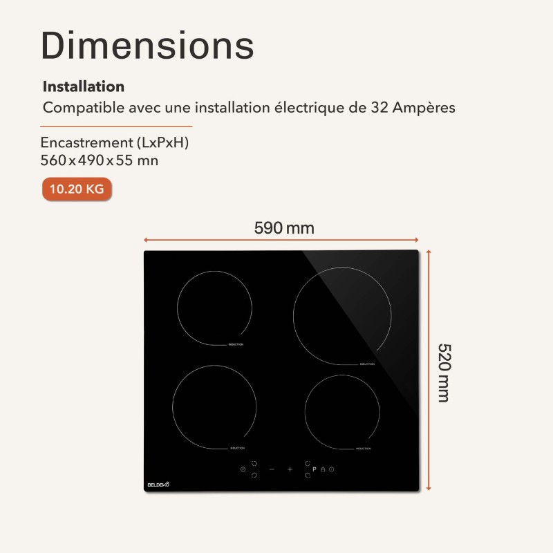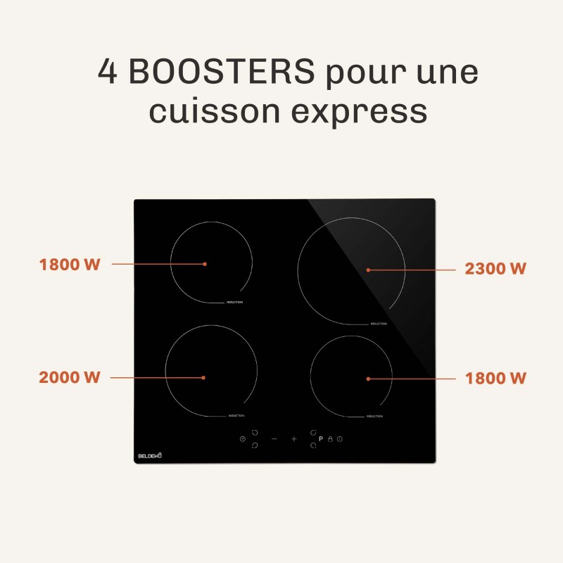 | Libellé | BELDEKO - Plaque De Cuisson Induction 4 foyers Avec Minuterie, 7900W, 4 Boosters, verrou enfants |