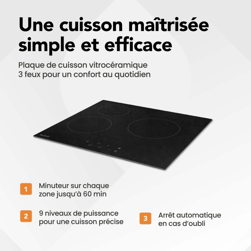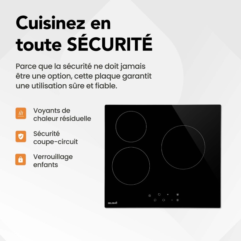 | Libellé | BELDEKO - Table de cuisson Vitrocéramique 3 foyers - Encastrable, Minuteur multi-zones Seulement 4,6 cm d'Épaisseur |