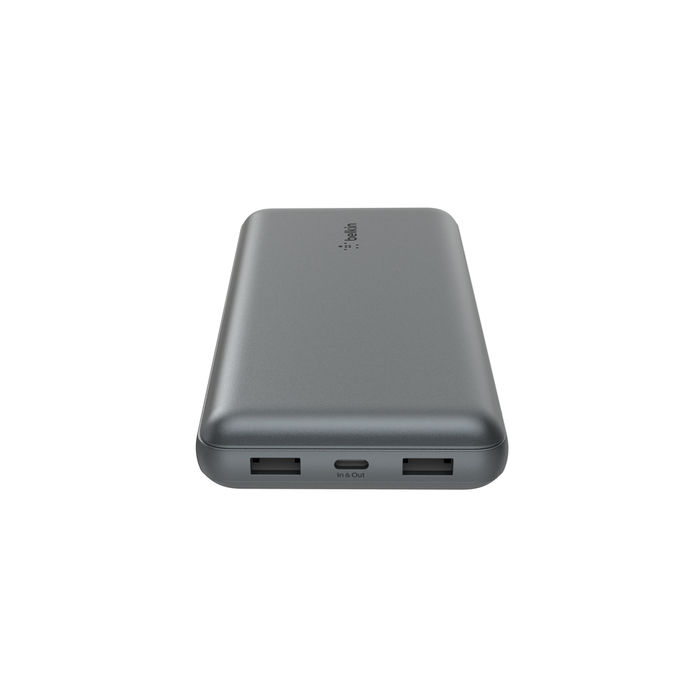 Belkin BoostCharge. Capacité de la batterie: 20000 mAh. Ports de sortie USB de type A: 2, Quantité de ports USB de type C: 1. Puissance de sortie totale: 15 W. Couleur du produit: Gris
