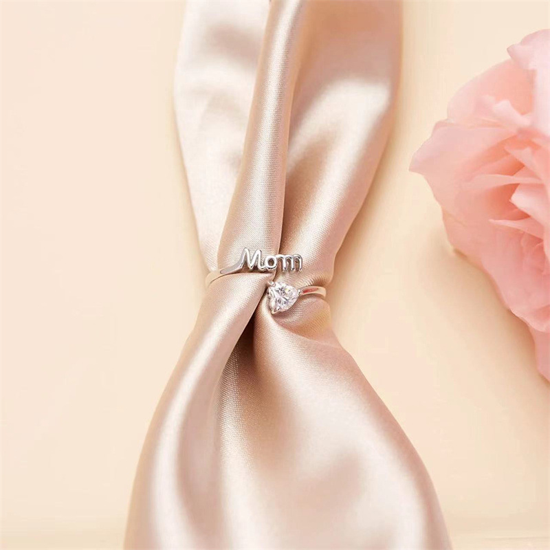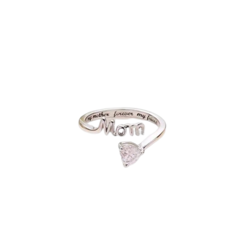 La bague est un bijou unique et un joli cadeau pour maman. Il est décoré d'une belle pierre scintillante et d'un texte affectueux.