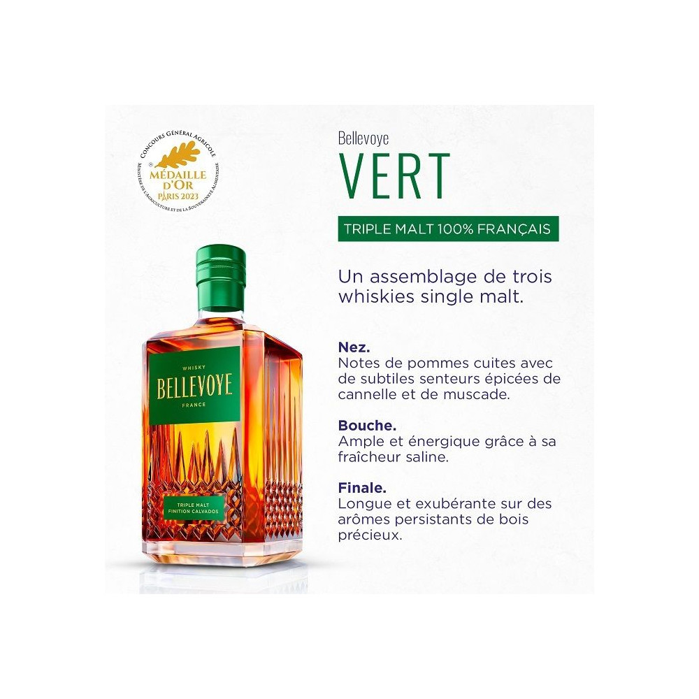 | Libellé | bellevoye vert - whisky triple malt 70 cl finition fût de calvados 43% vol. |