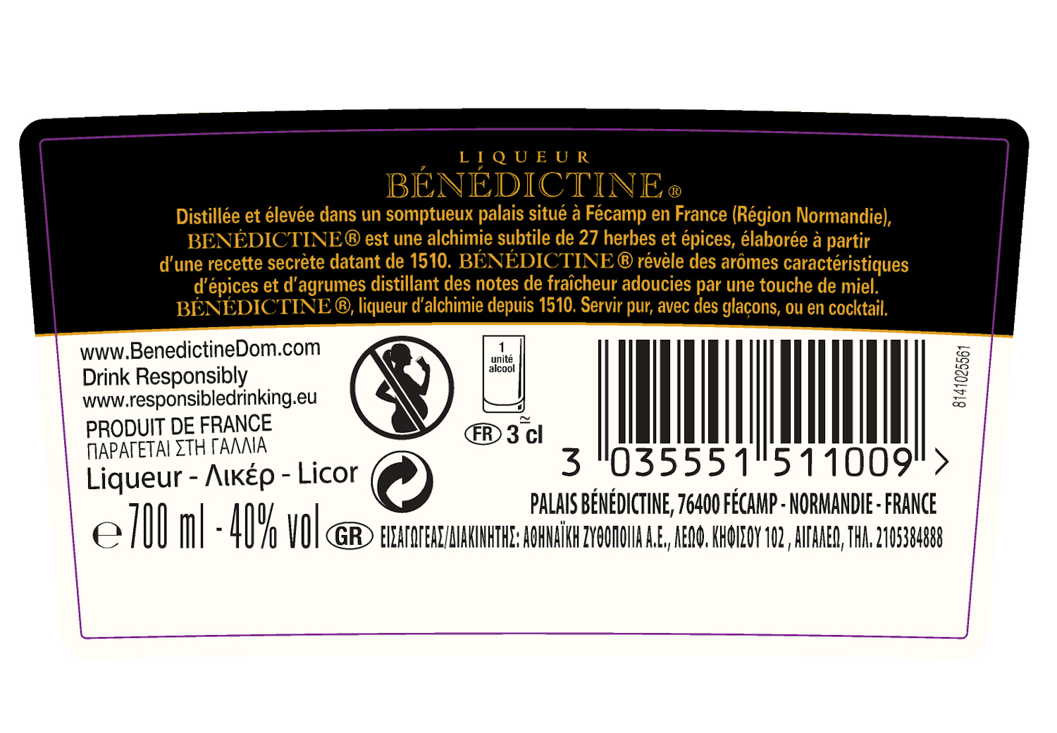 | Libellé | Bénédictine, 40% vol. - 70 cl |