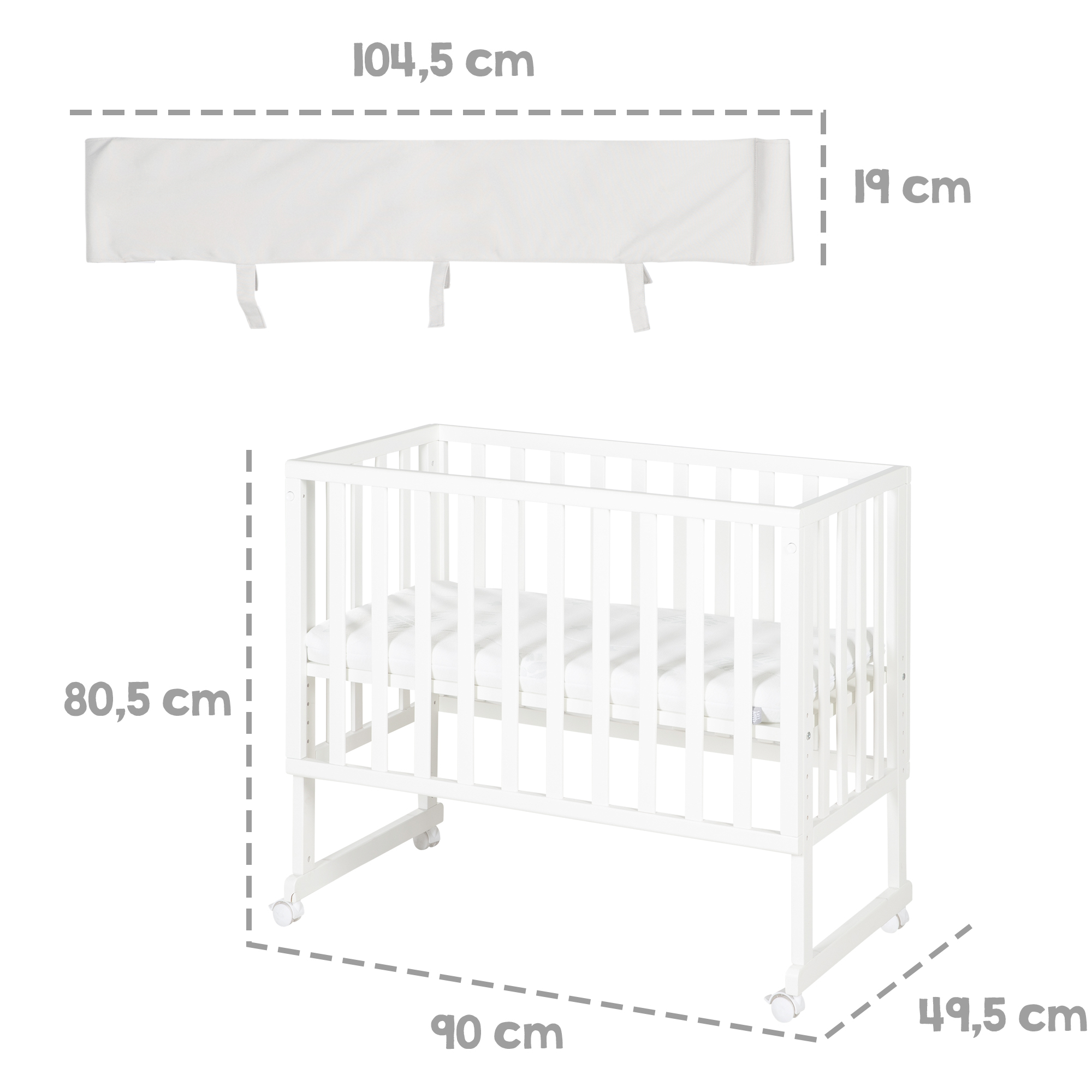 Le berceau cododo roba 3 en 1 blanc avec barrière est à la fois un lit cododo pour le lit des parents, un nid et un banc pour enfant et offre un environnement de sommeil optimal et sûr. Le lit bébé comprend un matelas de haute qualité de 45 x 90 cm, un nid de style "roba", une barrière de sécurité et 4 roulettes amovibles. Le lit cododo, dont la hauteur peut être réglée de 42,5 cm à n'importe quelle hauteur de lit, y compris les lits à sommier, peut être fixé facilement et en toute sécurité au lit des parents. Le lit d'appoint se transforme en berceau mobile sur simple pression d'un bouton et évolue de la naissance au lit pour les enfants plus âgés (4 roulettes incluses). Le lit bébé a été développé en allemagne selon les dernières normes de sécurité conformément à la norme EN 1130:2019. Tous les matériaux sont testés pour les substances nocives et certifiés.