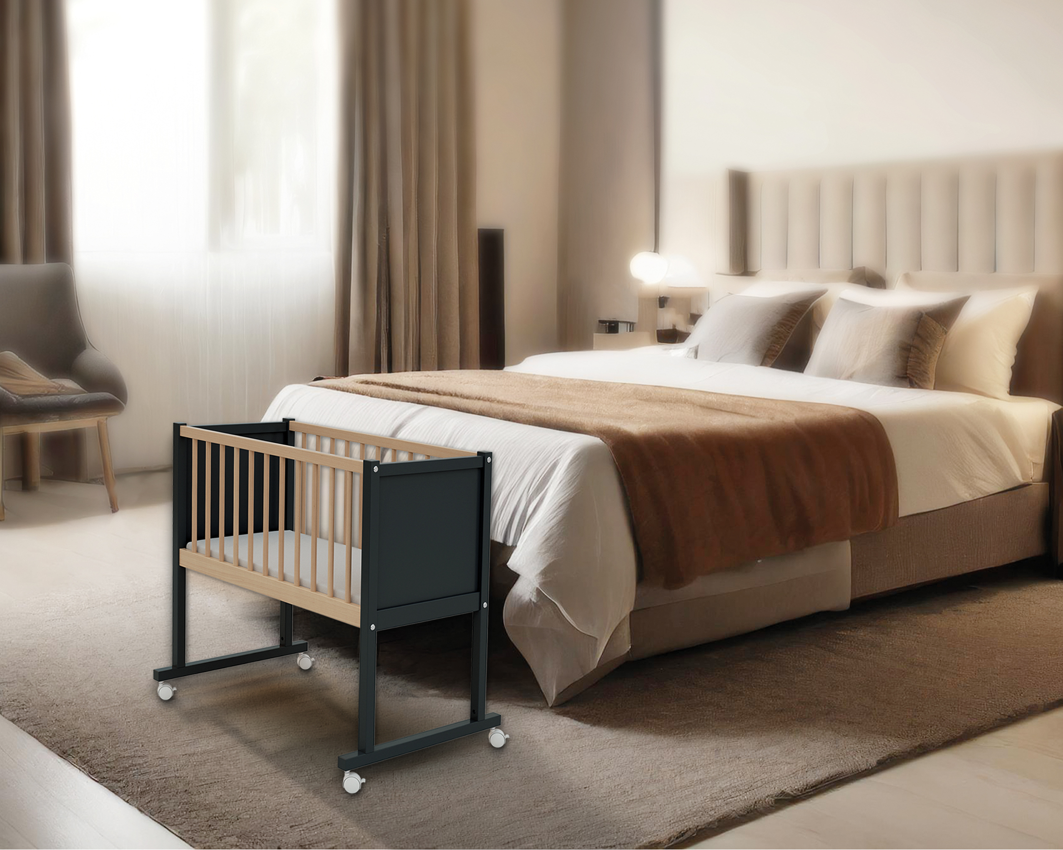 Équipé de 4 roulettes multidirectionnelles à frein, vous pourrez déplacer le berceau d'une chambre à l'autre selon les besoins sans réveiller votre bébé.