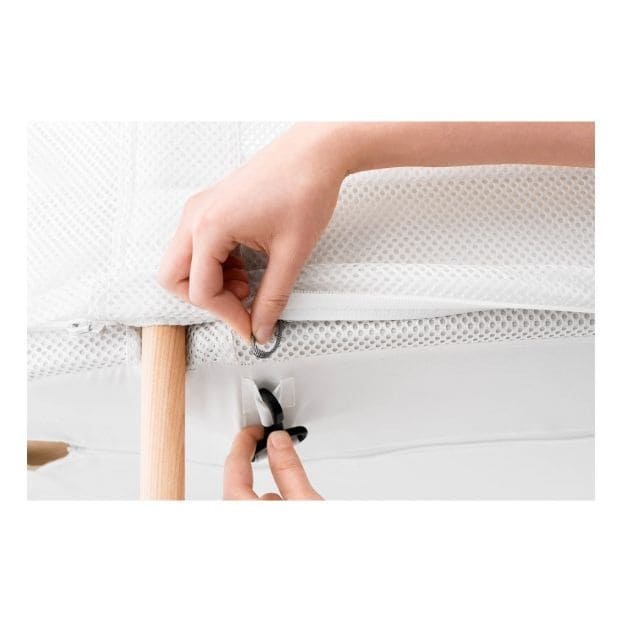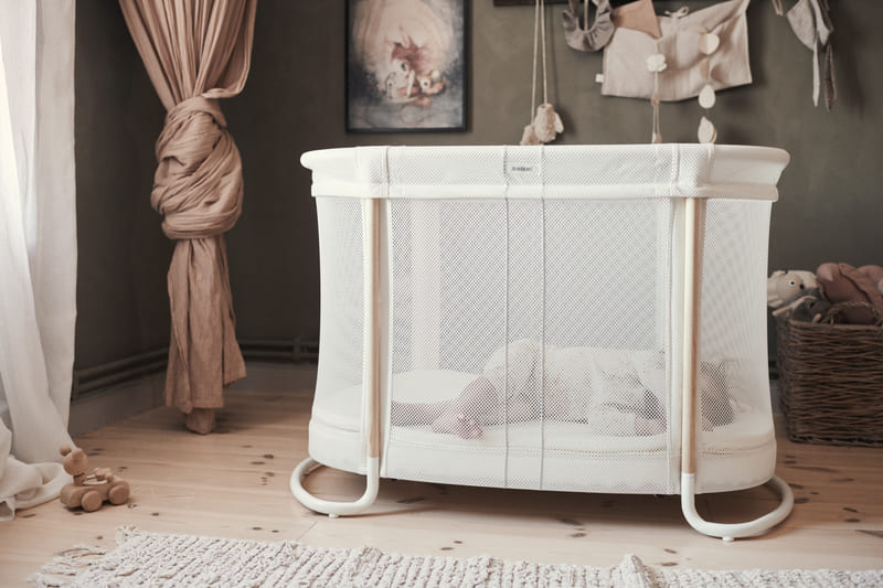 Quand votre enfant dort bien, vous dormez bien aussi. Le Berceau Évolutif BABYBJÖRN est un premier lit idéal pour votre bébé. Ce berceau a été mis au point en concertation avec des experts en sécurité. Les parois latérales en tissu mesh doux permettent une bonne circulation de l'air. Son matelas spécial est relié à ces parois, ce qui signifie que votre bébé ne peut pas se coincer entre les barreaux ou entre le matelas et le côté du lit. Votre bébé dort ainsi en toute sécurité dans un berceau bien aéré. Le matelas a deux positions en hauteur afin de pouvoir l'utiliser de la naissance jusqu'à l'âge de deux ans. Avec son design scandinave épuré, ce berceau s'intègre harmonieusement aux intérieurs modernes. Design sûr et aéré pour un bon sommeil Ce berceau a été mis au point en concertation avec des experts en sécurité. Il se distingue par ses parois aérées en tissu mesh doux et sa solution unique avec un matelas spécial relié à la maille latérale du berceau. Il apporte ainsi une bonne ventilation et vous n'avez plus à craindre que votre enfant se coince les bras et les jambes. Convient aux enfants de 0 à 2 ans Le berceau a deux positions en hauteur : une pour le nouveau-né, et une pour l'enfant un peu plus âgé. Cela vous permet de placer et de sortir plus facilement votre bébé du berceau. L'autre position permet de l'adapter pour accueillir l'enfant jusqu'à l'âge de deux ans. Une solution confortable pour vous et votre enfant ! Design suédois moderne Avec son design suédois intemporel, ce berceau s'intègre harmonieusement aux intérieurs modernes. Sa forme ovale et épurée crée un espace de repos douillet qui occupe peu de place et qui est facile à déplacer lorsque cela est nécessaire. Matériau lavable et à séchage rapide Le tissu du berceau est facile à enlever et lavable en machine. Le tissu maille filet sèche rapidement et vous permet ainsi de vite remettre en place le berceau en cas d'accident. Construction stable et sûre Grâce à la conception stable et sûre du berceau, vous avez l'assurance que votre enfant dort en toute sécurité. La fermeture éclair ne peut être ouverte ou fermée que par un adulte à l'aide de l'outil de fermeture éclair fourni. Facile à déplacer dans la maison Avec sa petite taille et son poids relativement faible, le berceau est facile à déplacer en fonction de vos besoins. Facile à monter La solution pratique de fixation à clic facilite le montage du cadre du berceau. Pour le démontage, il suffit d'utiliser l'outil de fermeture éclair fourni.