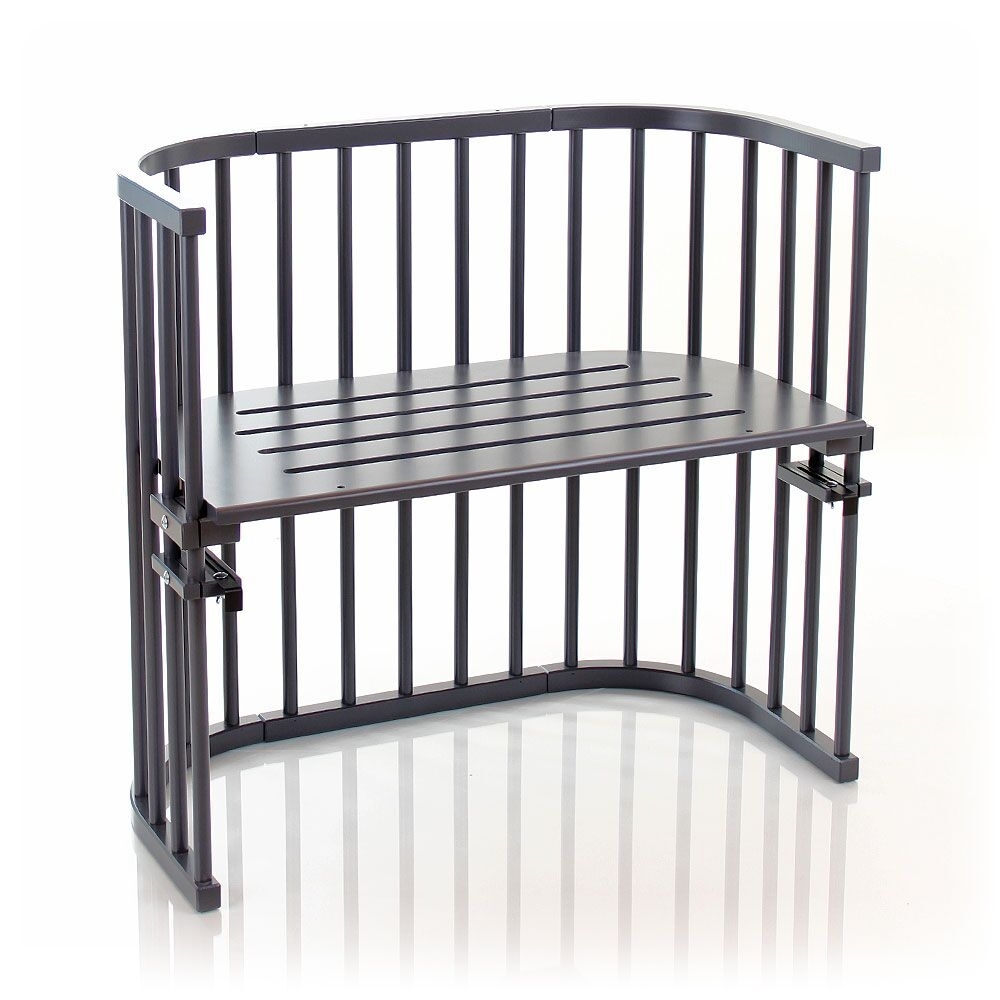 Le berceau Babybay cododo ORIGINAL gris vernis s'accroche et s'adapte au lit des parents avec un système très sécurisé. Les dimensions : Longueur : 87 cm - Profondeur : 43 cm - Largeur : 46 - Hauteur : 79 cm - Poids : 11 kg – Peut ensuite servir de banc, bureau, berceau indépendant avec 4ème côté, parc, ou chaise haute.