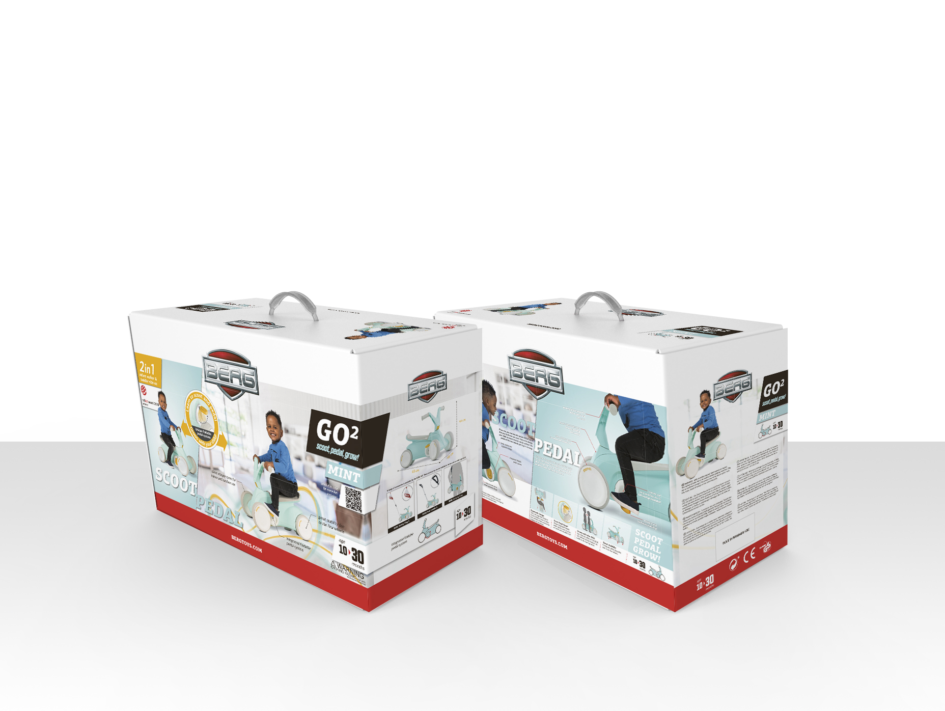 - Trotteur/Porteur/Kart à pédales évolutif entre 10 mois et 30 mois - Grand siège évolutif anti-dérapant - Pneus silencieux en EVA – Très bonne adhérence - Pas de crevaison - Excellent contrôle du GO2 du au maniement indépendant du volant et des pédales - Ce kart à pédales roule souplement et facilement grâce aux roulements à billes - Avec ce kart à pédales, votre enfant peut non seulement rouler en avant, mais aussi en arrière - Les 4 roues offrent une adhérence stable et sure - Votre enfant garde le contrôle comme le volant et les pédales se manient indépendamment l’un des autres - Grace à son design ergonomique, votre enfant s’amuse sans que les pieds touchent les pédales ni les roues de derrière - Très beau design – primé au Red Dot Award (concours international du design) - Le BERG GO2 contribue au développement physique et cognitif de votre enfant - Disponible en 3 couleurs (Bleu, Rose ou Menthe)