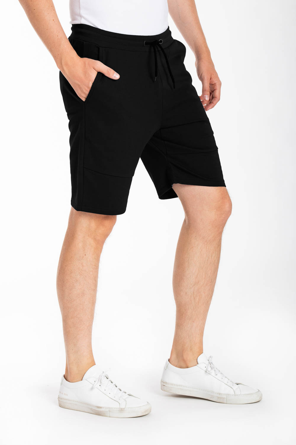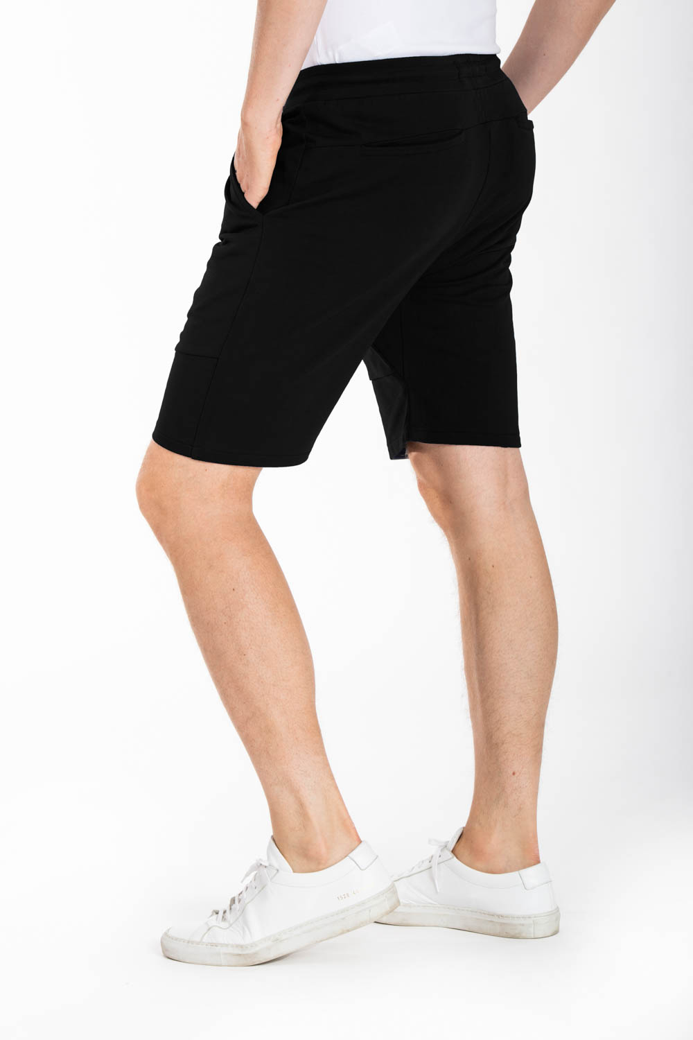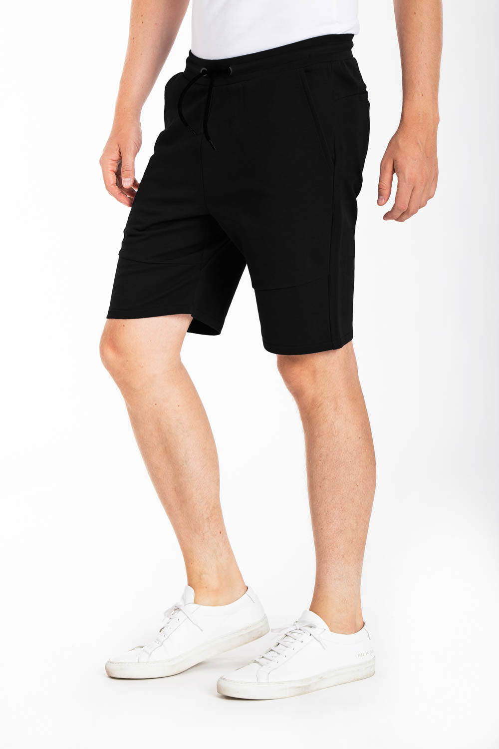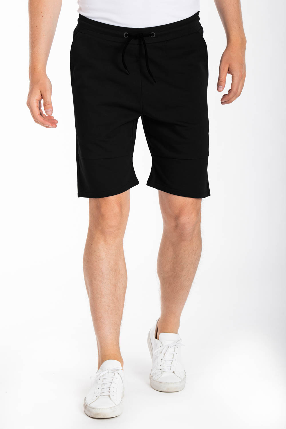 Bermuda de détente en molleton non gratté, coupe regular, poches italiennes sur les côtés, 2 poches arrière dont une avec print logo, fourche renforcée, coton 100%.Le mannequin porte une taille L.