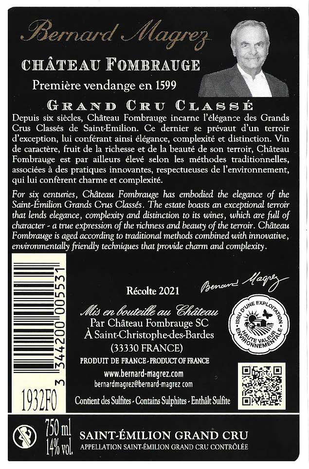 Libellé Bernard Magrez Château Fombrauge Grand Cru Classé, 2021 - Saint-Emilion Grand Cru AOP - Rouge - 75 cl