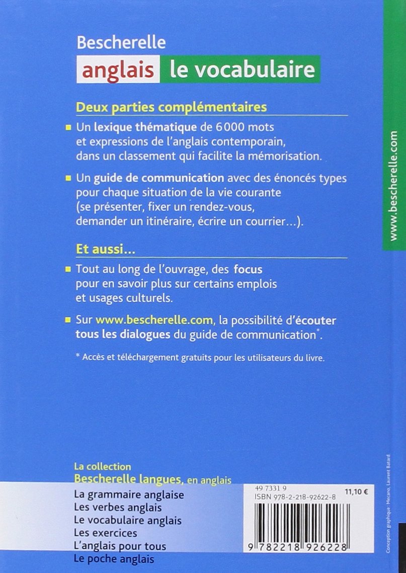 | Libellé | Bescherelle - Anglais : le vocabulaire - la référence sur le lexique anglais (Poche) |