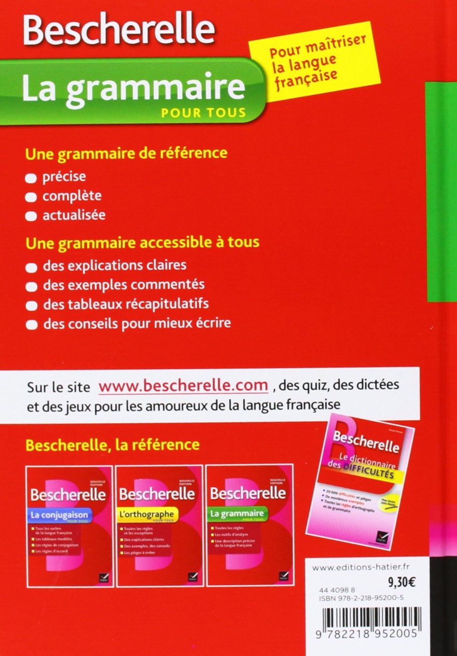 | Libellé | Bescherelle La grammaire pour tous - Ouvrage de référence sur la grammaire française (Cartonné) |