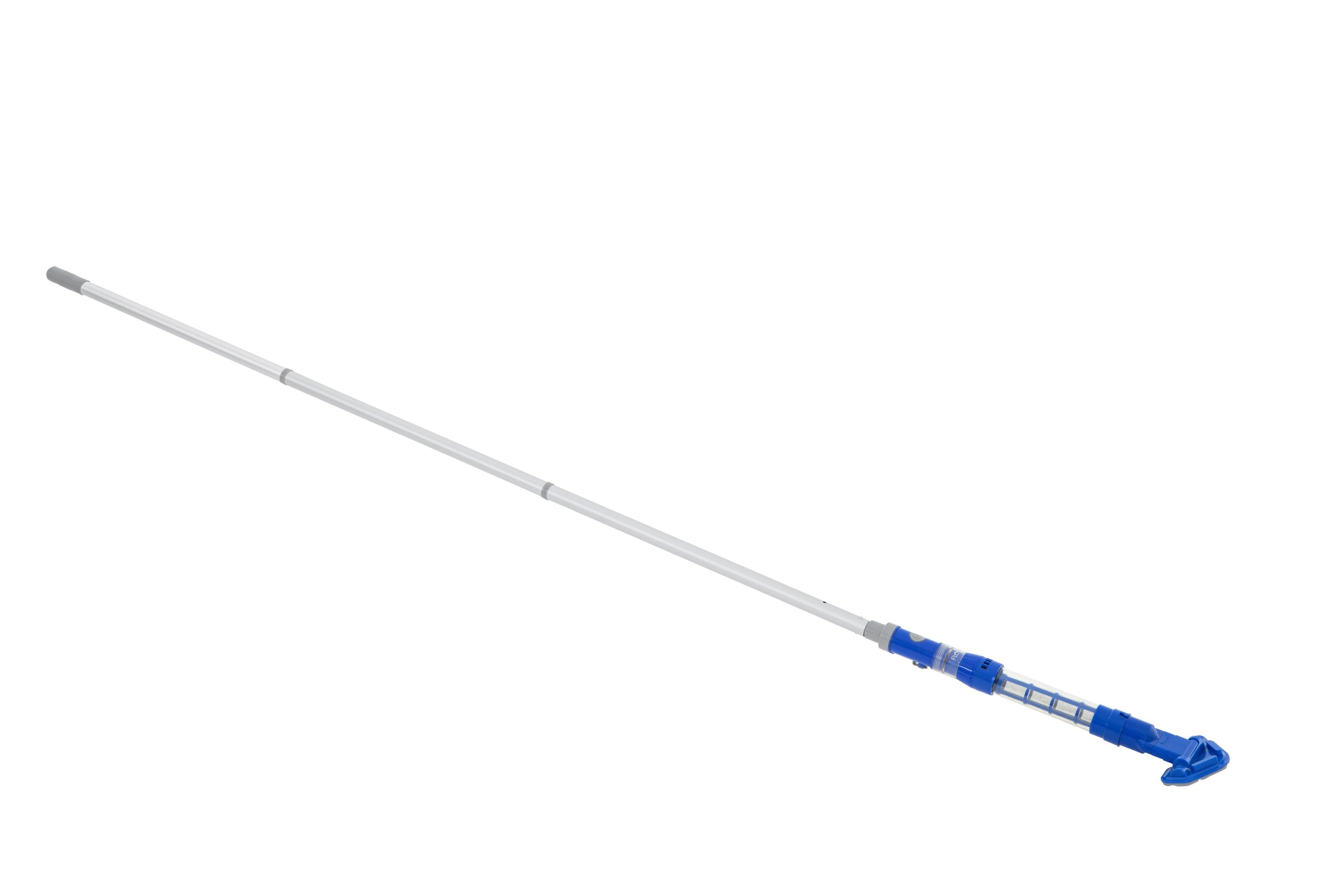 Plus de soucis d’entretien de la piscine avec l’aspirateur de piscine rechargeable Flowclear AquaSurge. Grâce à une batterie rechargeable facile à utiliser, vous n’avez pas à vous soucier des cordons qui vous gênent pendant que vous nettoyez la saleté et les débris du fond de votre piscine. Cet aspirateur peut fonctionner en continu entre deux charges pendant 50 minutes. Après l’avoir utilisé, branchez-le pour le recharger. Deux têtes d’aspiration interchangeables sont incluses et vous permettront de nettoyer aussi bien les parois plates que les angles de la piscine. Le nettoyage est un jeu d’enfant grâce à la simple pression d’un bouton. Grâce à sa perche en 3 parties, cet aspirateur peut être utilisé dans des piscines d’un diamètre allant jusqu’à 6,10 m. Le compartiment transparent pour les débris vous permet de voir quand l’aspirateur doit être vidé, ce qui vous permet d’obtenir rapidement et facilement une piscine d’une propreté éclatante.