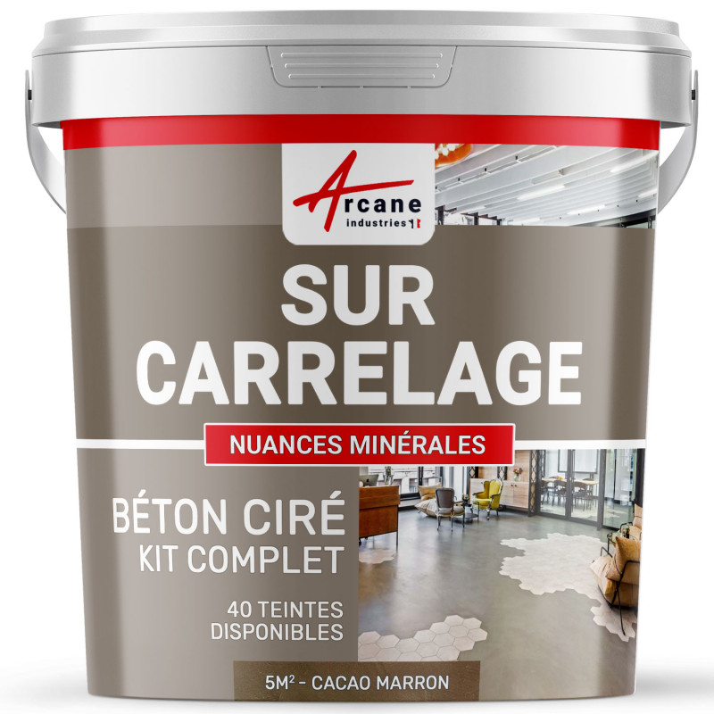 Libellé Beton Cire Carrelage Pour Sols Et Murs - Kit Beton Cire Sur Carrelage - Cacao Marron - Kit 5 M2 (2 Couches) - Arcane Industries
