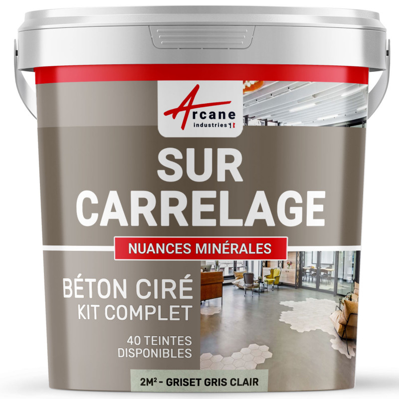 | Libellé | Beton Cire Carrelage Pour Sols Et Murs - Kit Beton Cire Sur Carrelage - Griset Gris Clair - Kit 2 M² (2 Couches) - Arcane Industries |