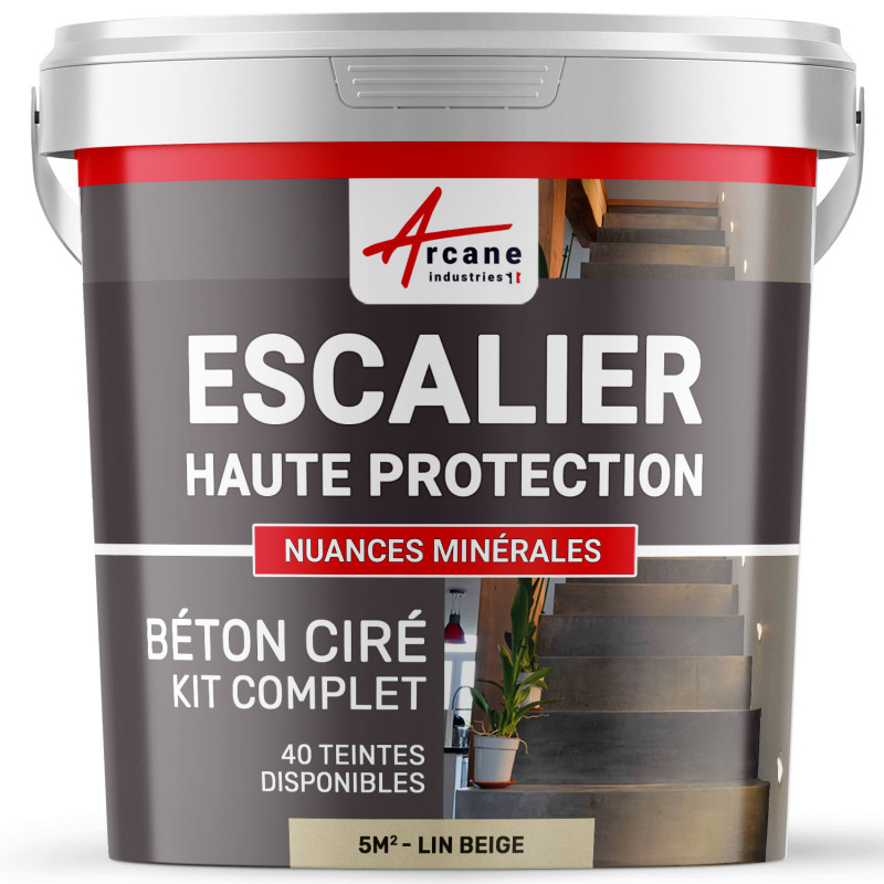 Libellé Béton Ciré Escalier - Kit Complet Primaire Et Vernis De Finition - En Neuf Ou Rénovation - Lin Beige - 5 M² (en 2 Couches) - Arcane Industries