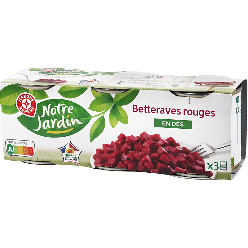 Ingrédients : Betteraves rouges, eau, vinaigre d'alcool, sucre, sel.