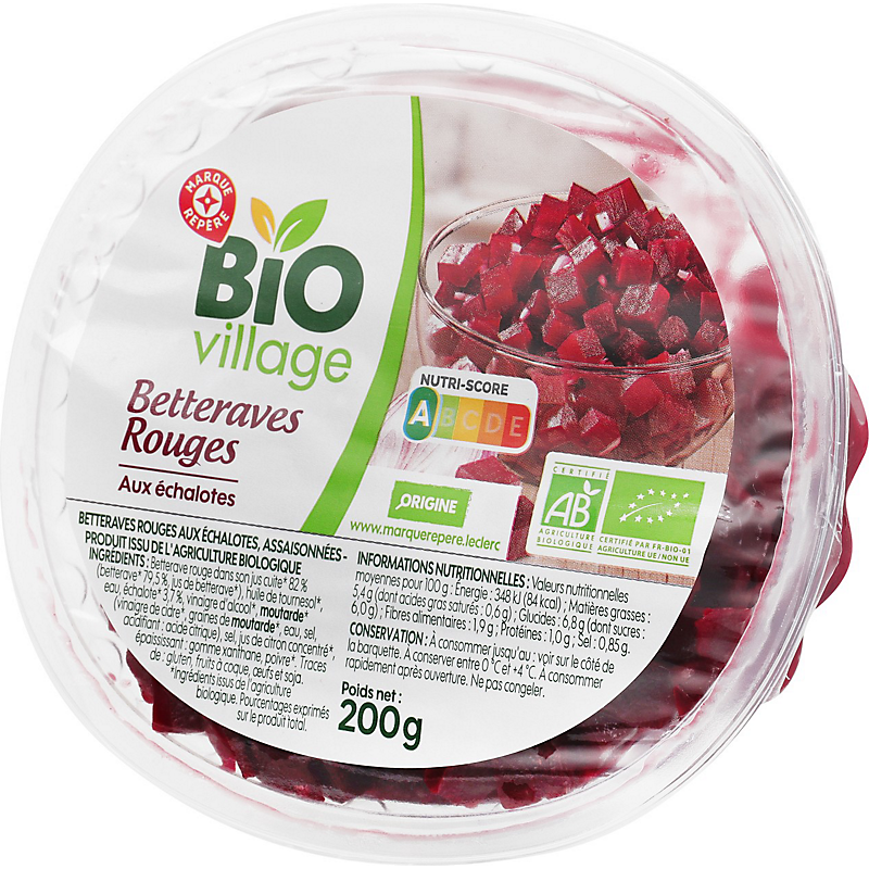 Betteraves rouges aux échalotes, assaisonnées - Produit issu de l'Agriculture biologique BIO VILLAGE