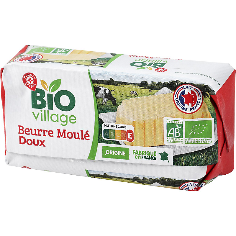 Beurre doux 82 % de matières grasses. Produit issu de l'agriculture biologique. BIO VILLAGE