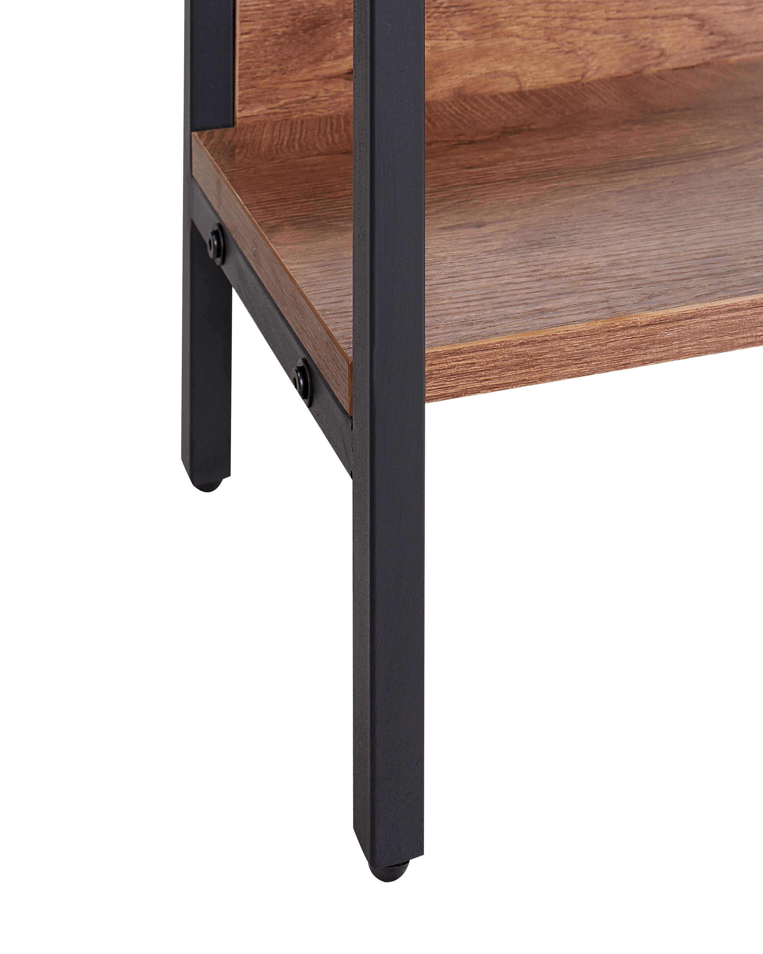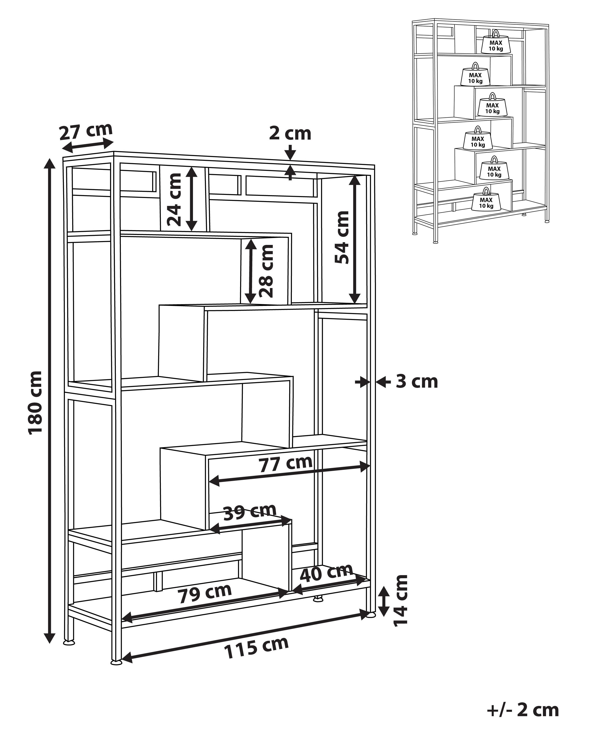 Étagère design déstructurée au style industriel et moderne. Organisez l'espace de votre chambre avec cette bibliothèque polyvalente. Son design simple et ouvert en fait un parfait séparateur de pièce qui vous aidera à créer différentes zones dans une même pièce. Les étagères robustes sont finies pour ressembler à du bois dans un ton foncé pour une montée naturelle, tandis que le cadre en acier noir donne un air industriel à la pièce. Grâce aux pieds réglables, il sera parfaitement équilibré même sur un sol inégal.