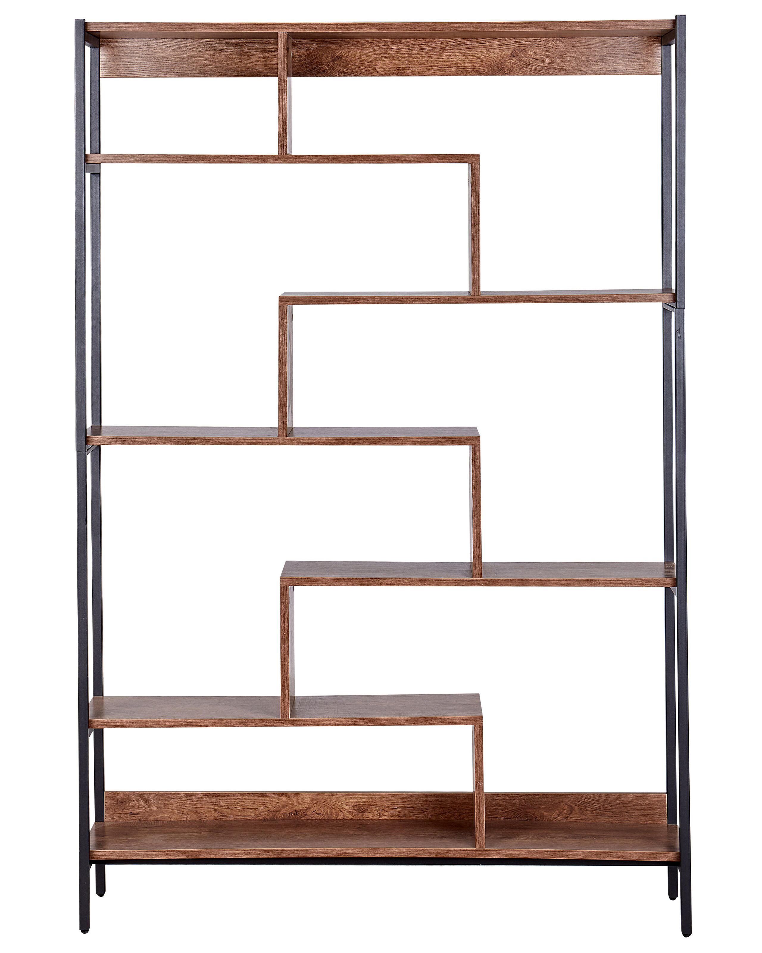 Bibilothèque design effet bois foncé / noir 6 niveaux DAVEN