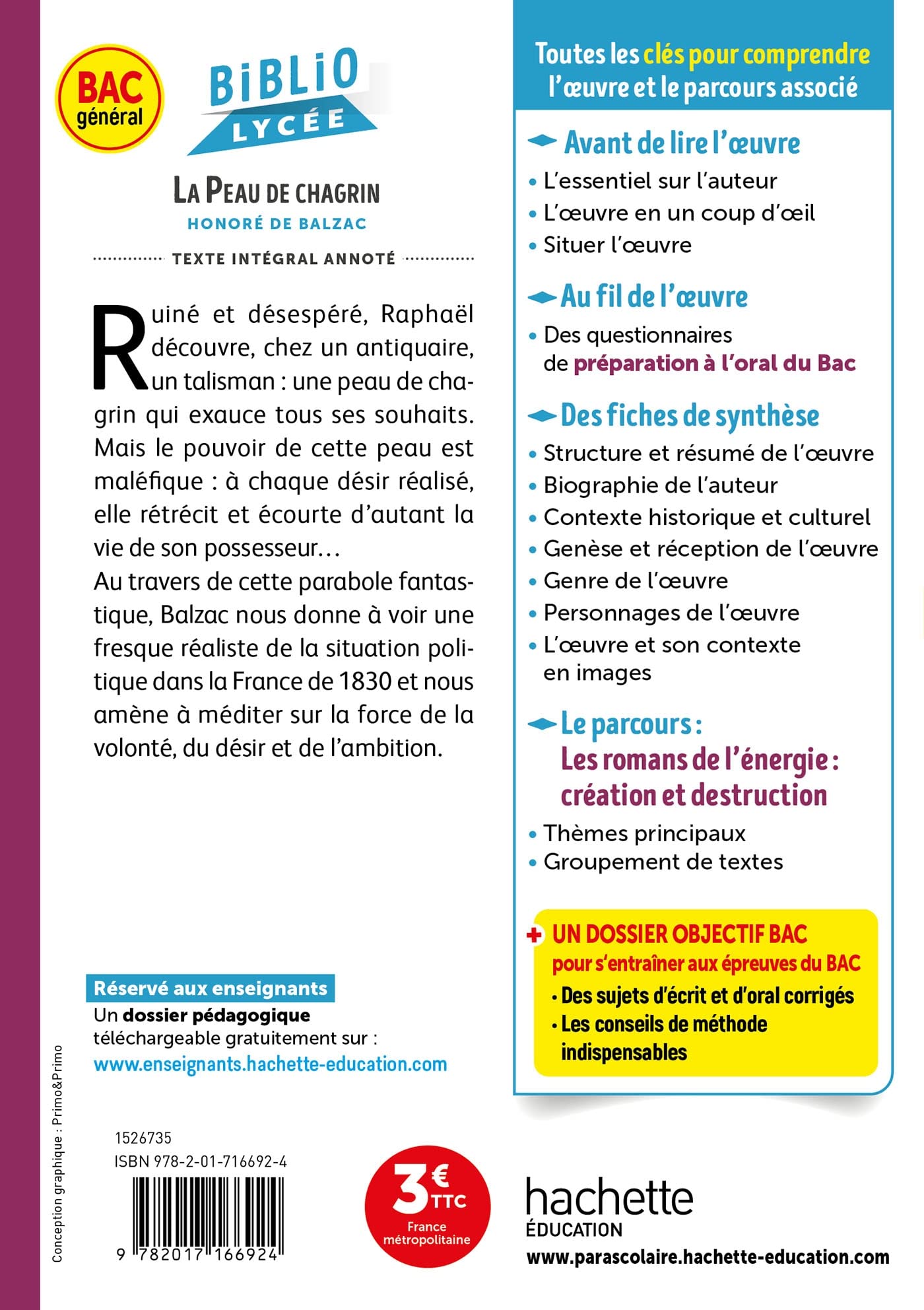 | Libellé | BiblioLycée - La Peau de chagrin, Balzac BAC 1re générale - BAC 2026 - Parcours : Les romans de l'énergie : création et destruction (Poche) |