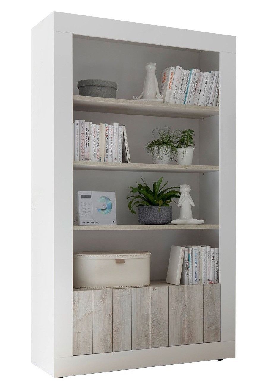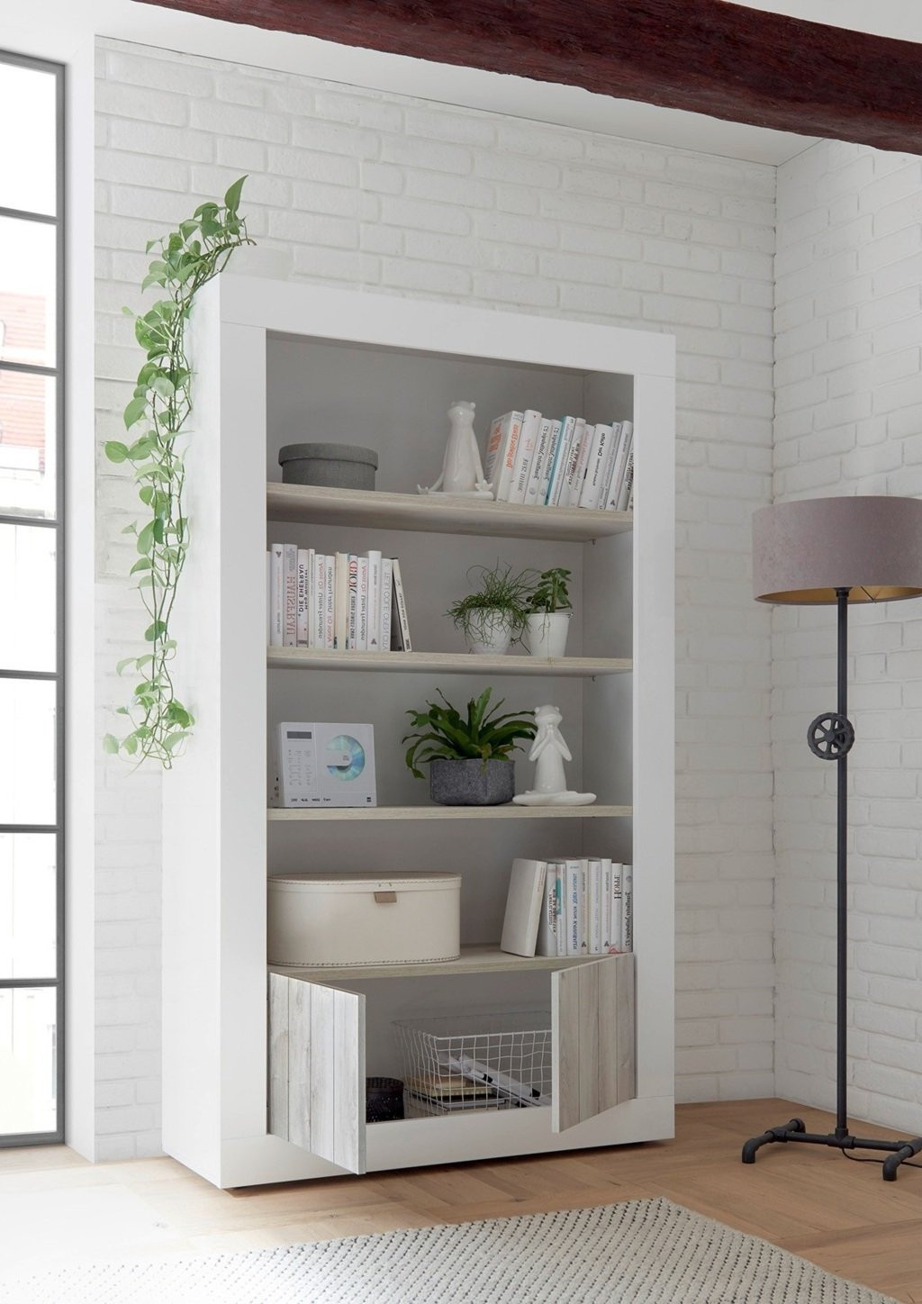 Bibliothèque 4 niveaux laqué blanc brillant et pin gris Pilari